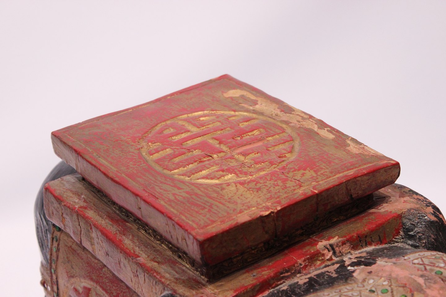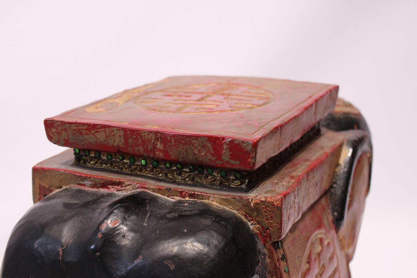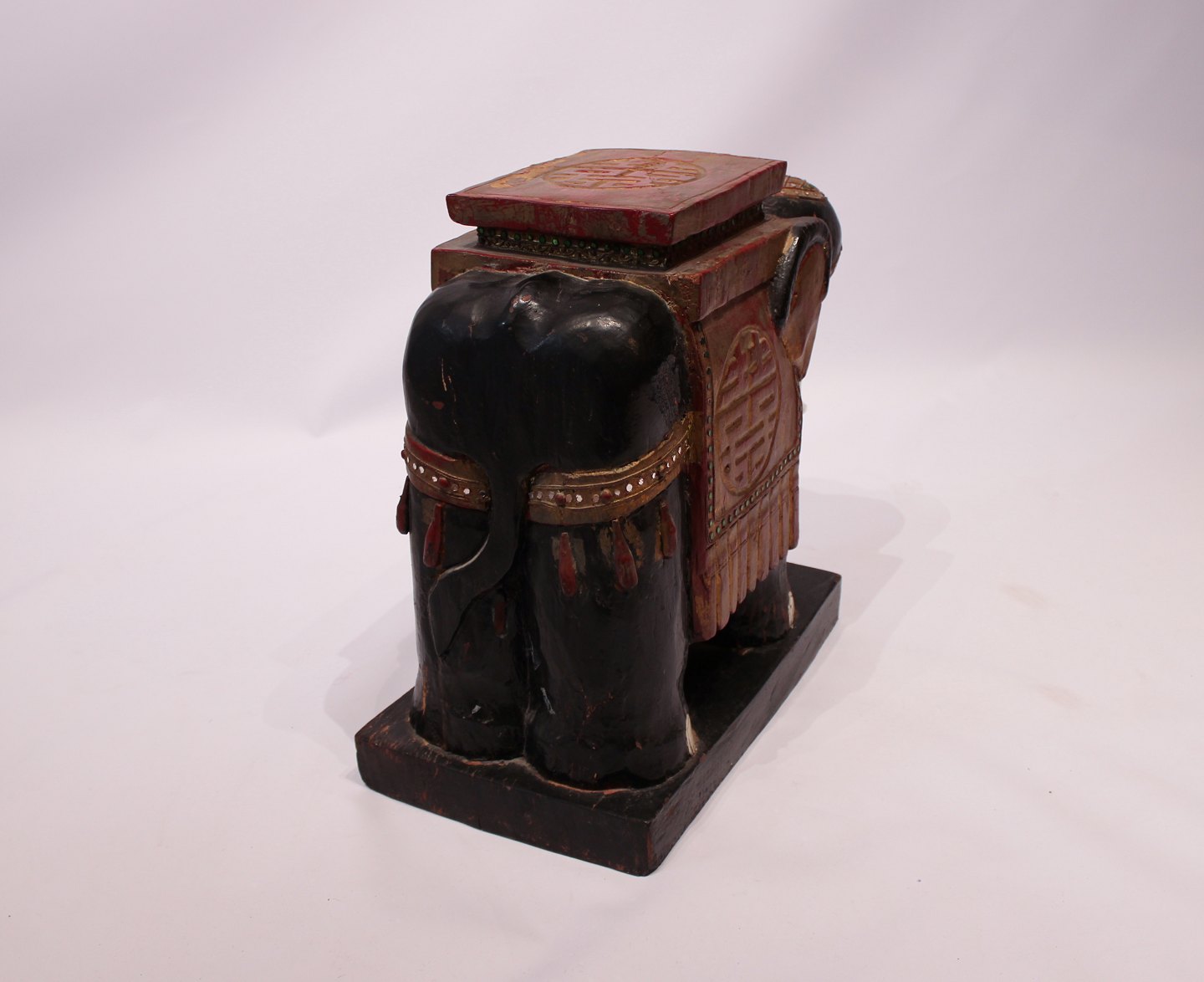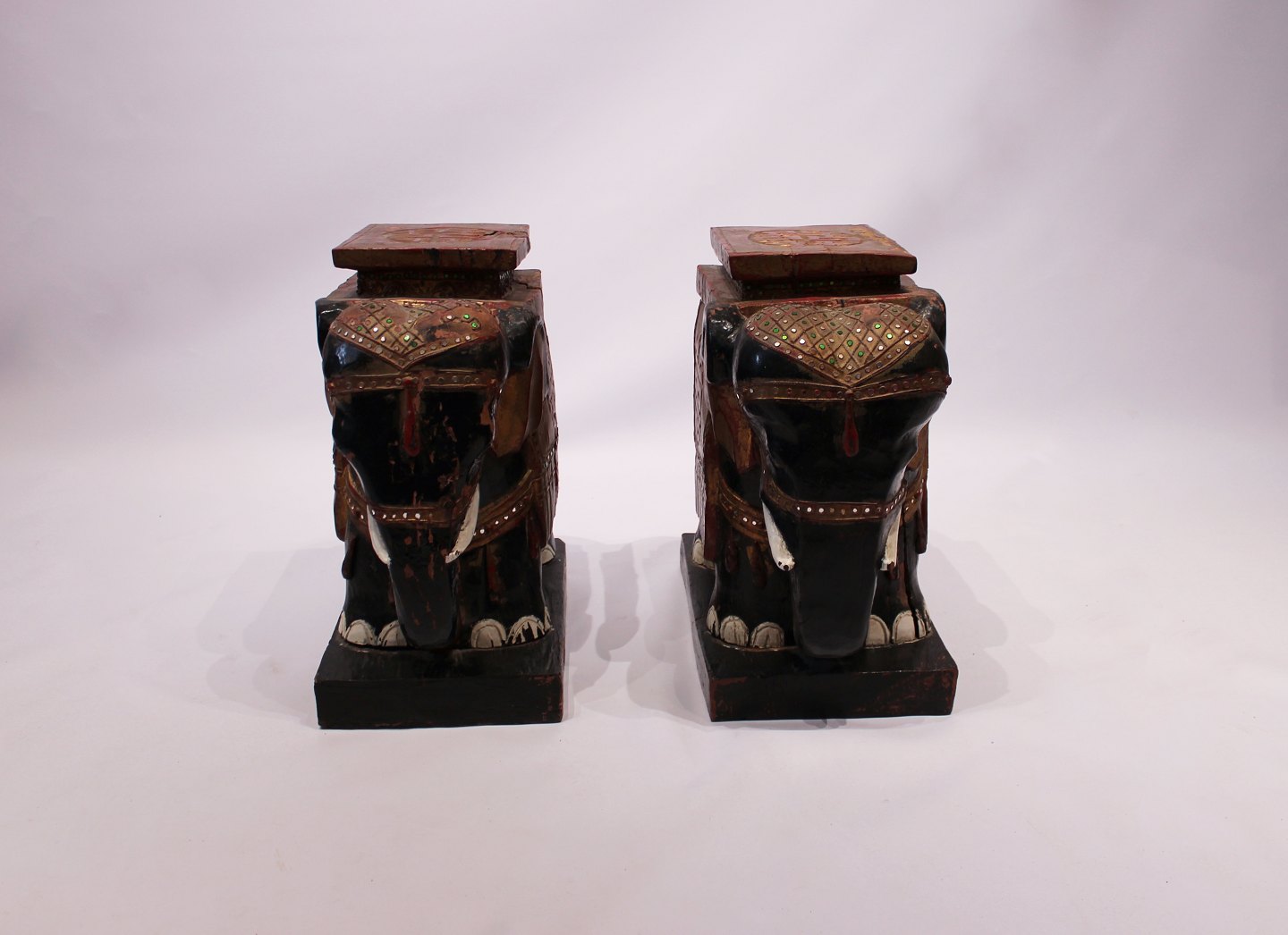 SoldA pair of chinese elephants in original painted wood and with patina from around the 1880s. The elephants are suitable as lamp/coffee table or other decoration.