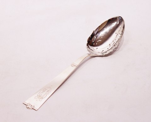 Frokostgaffel i andet mønster stemplet Graeser og af tretånet sølv.
