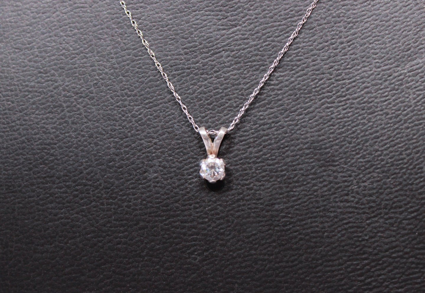 Kæde i 10 kt. hvidguld, stemplet AU, med vedhæng af 925 sterling sølv og zirkon.