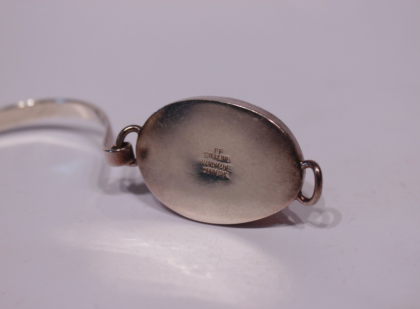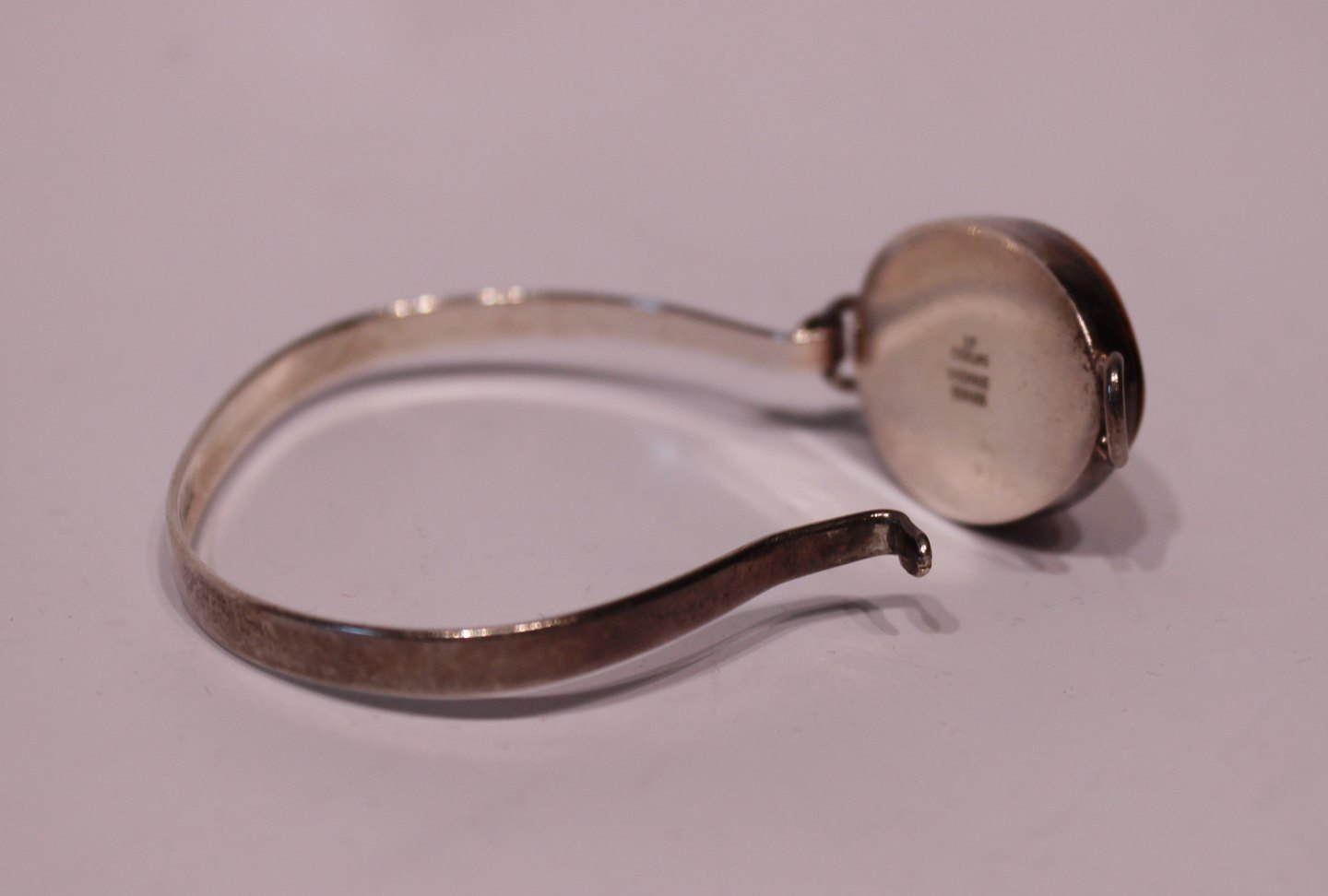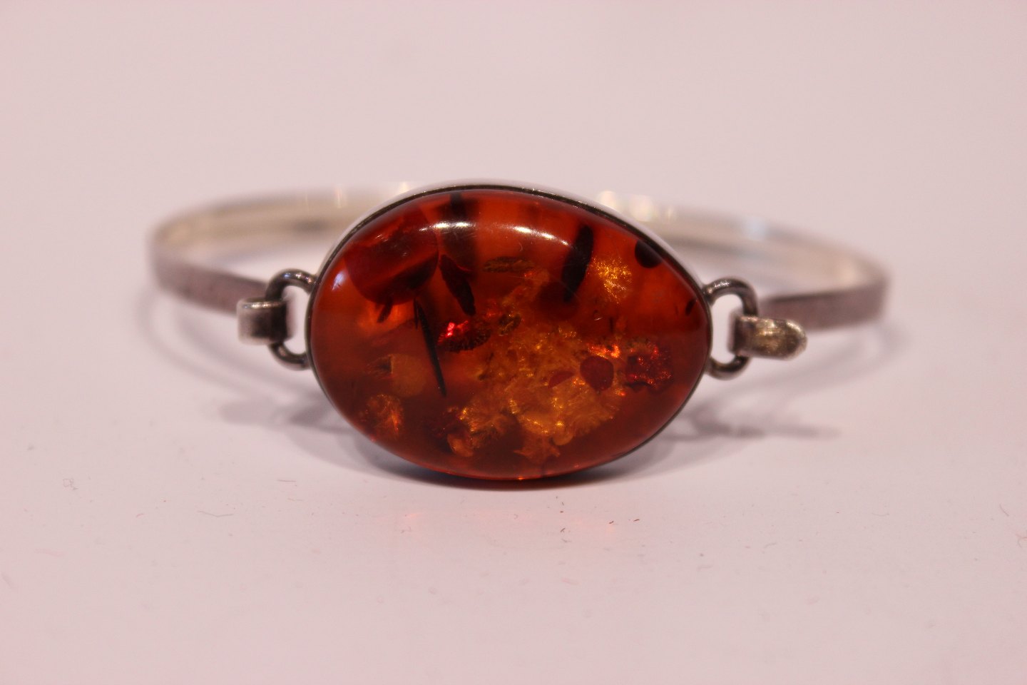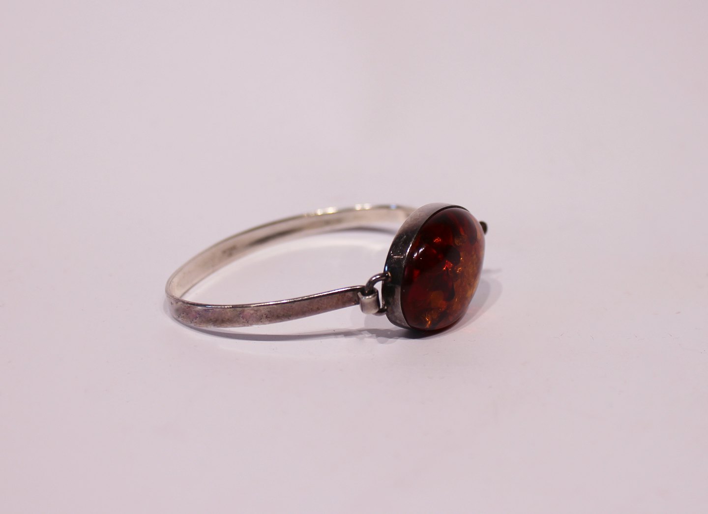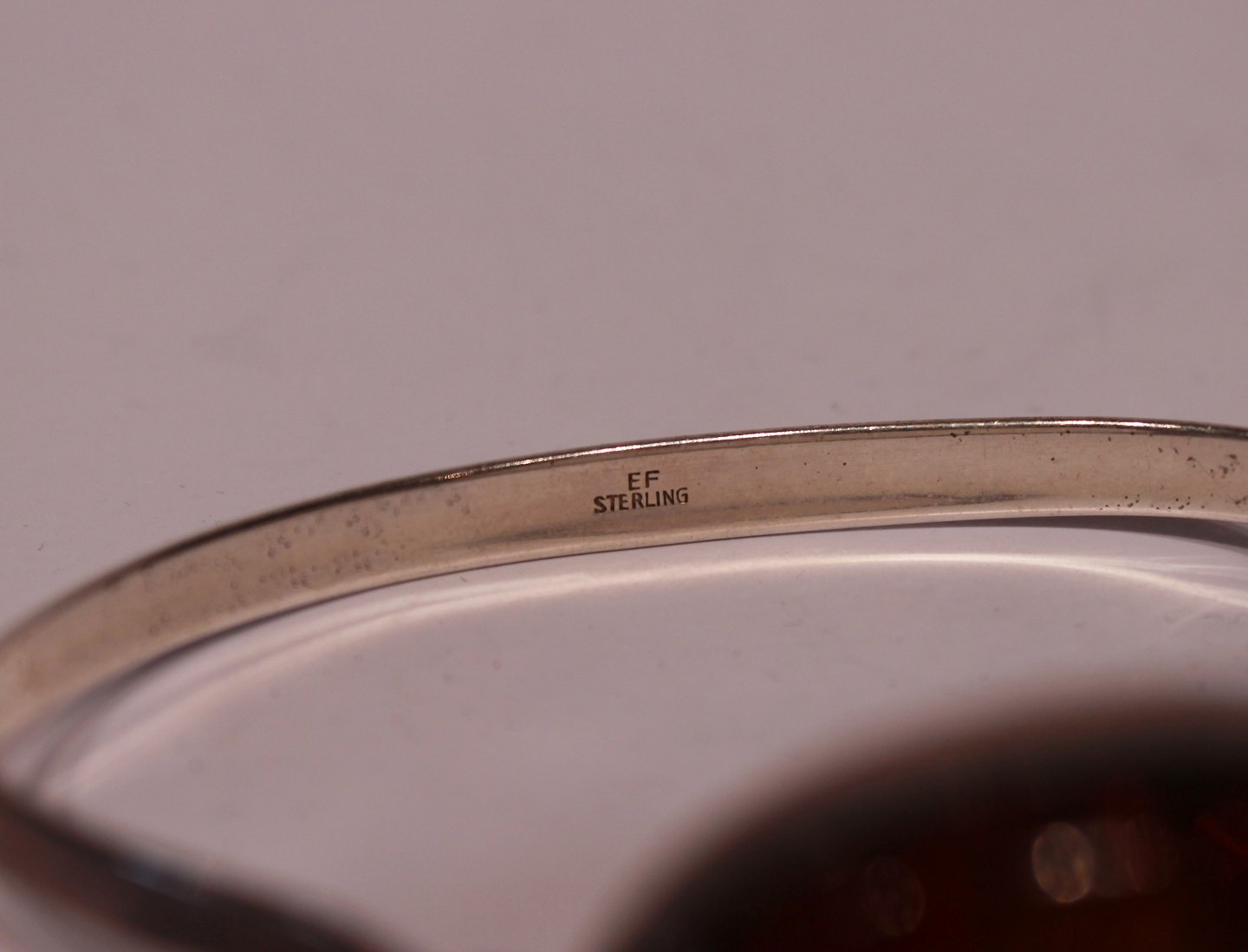 Bangle with large piece of amber, of 925 sterling silver and stamped EF.