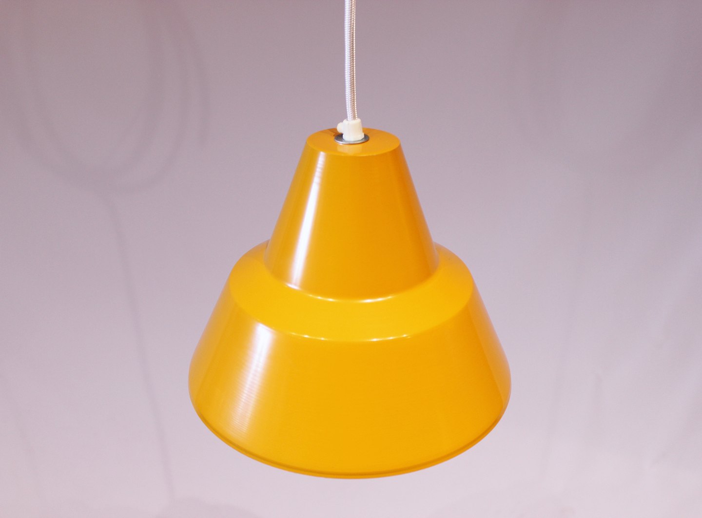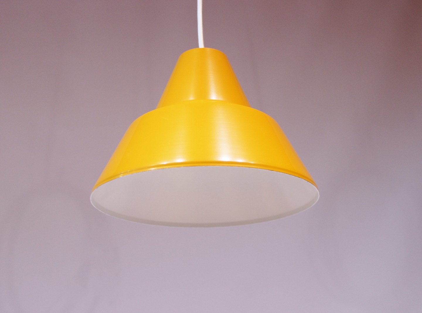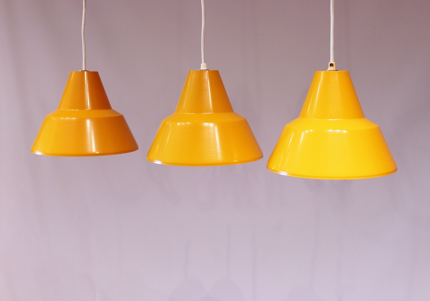 SoldSet of 3 yellow workhop pendants of danish design from the 1960s.