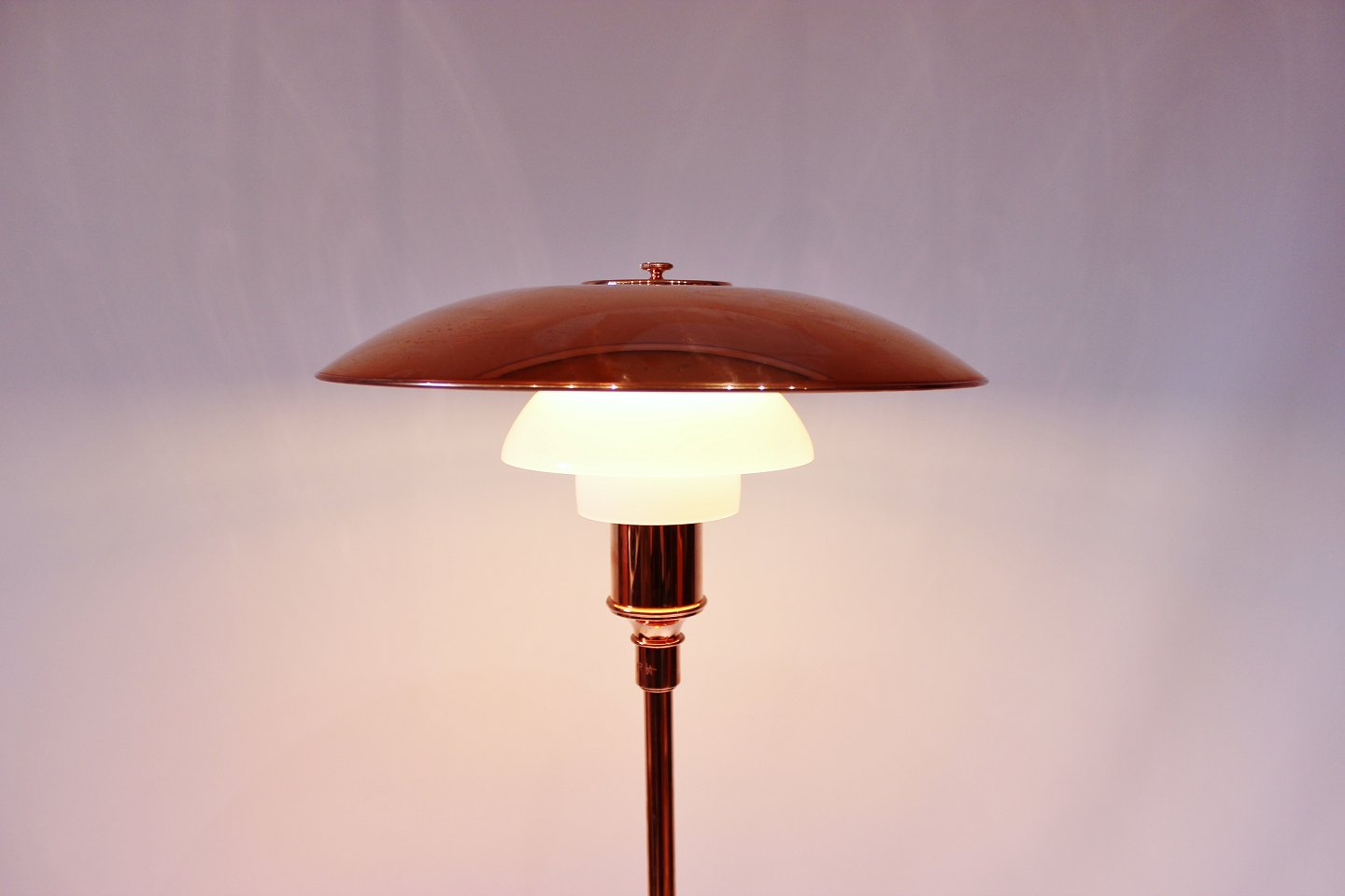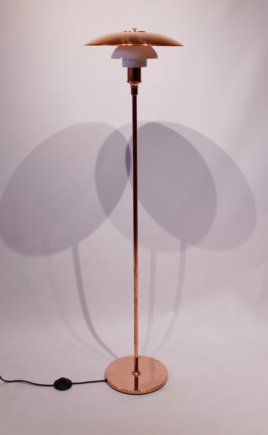 SoldPH3½-2½, limited edition, copper floor lamp by Poul Henningsen and Louis Poulsen. The lamp is the larger shade in copper.