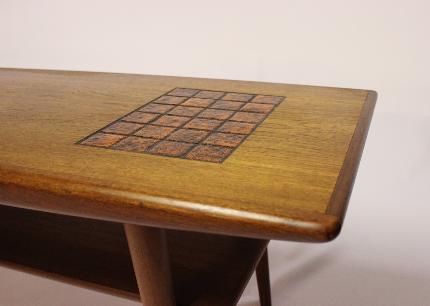 Coffee table in teak with tiles in dark colors of danish design from the 1960s. The table is in great condition.