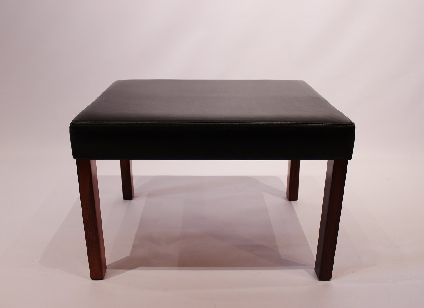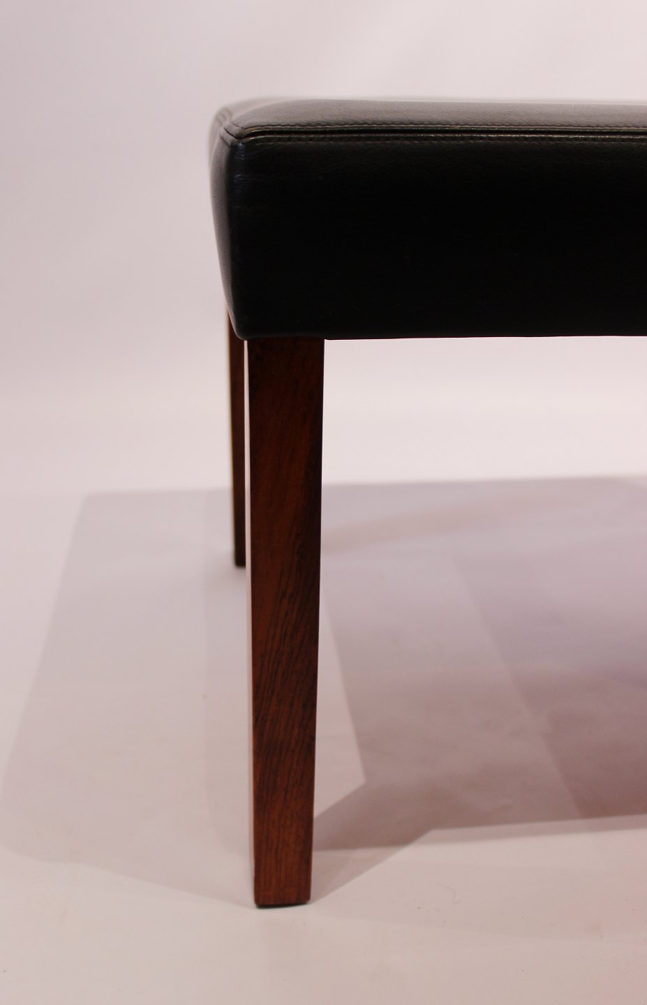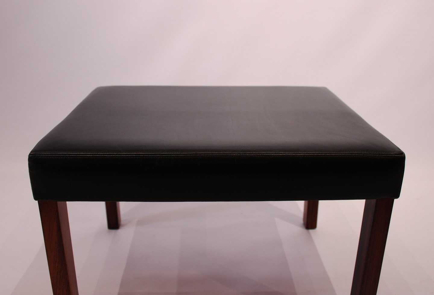 Stool with legs of rosewood and upholstered with black leather of danish design from the 1960s. The stool is in great vintage conditon.