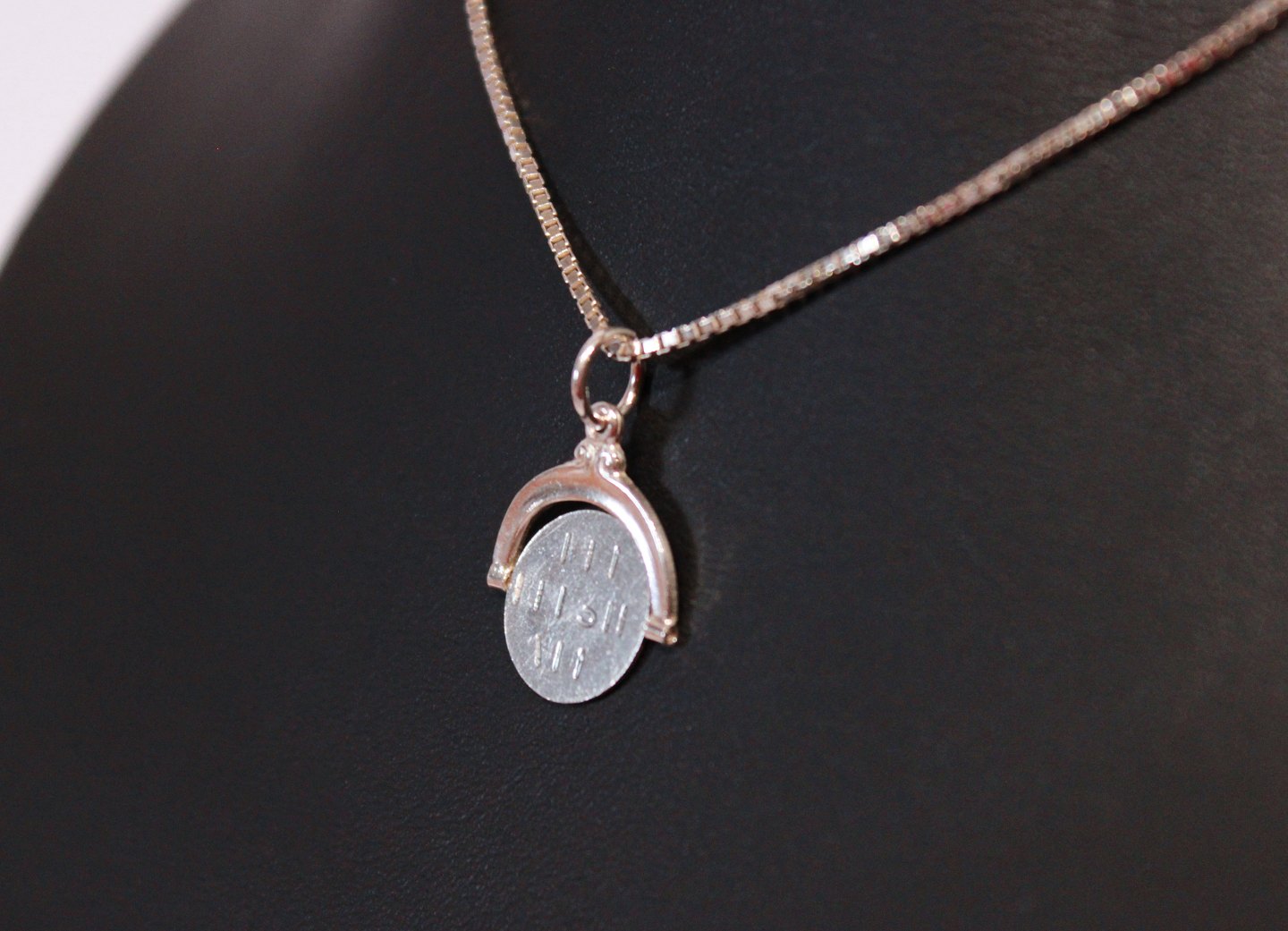 SolgtLille "dreje" vedhæng med symboler i sølv. Lignende kæde kan tilkøbes separat.
