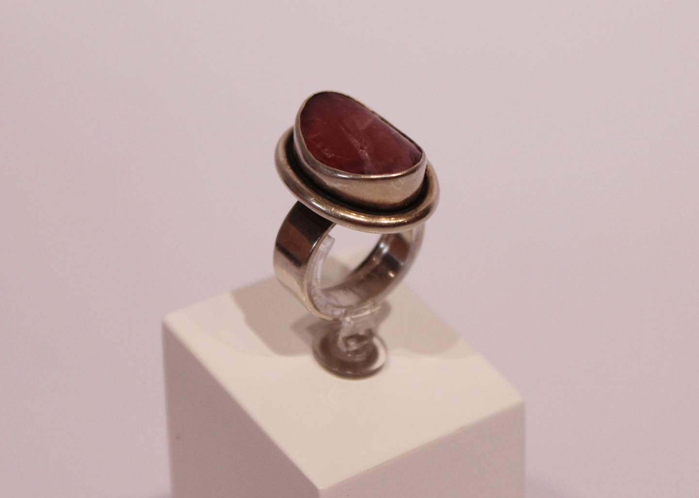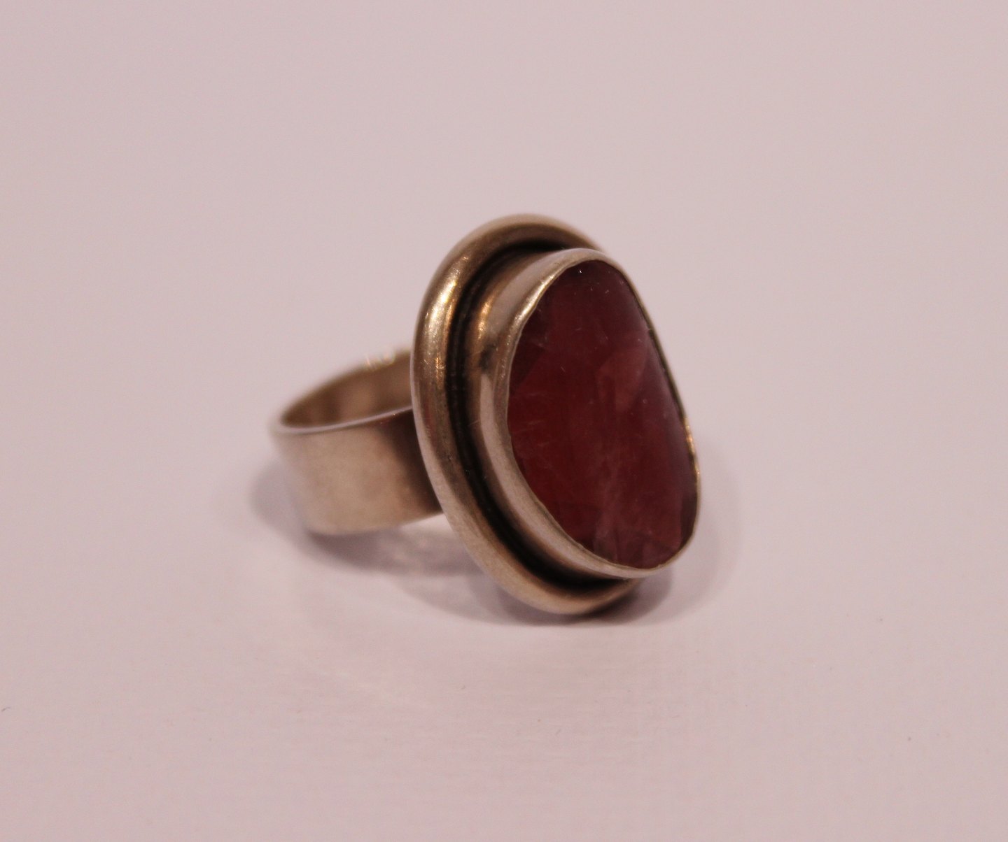 Ring with pink stone, stamped H in 925 sterling silver.
