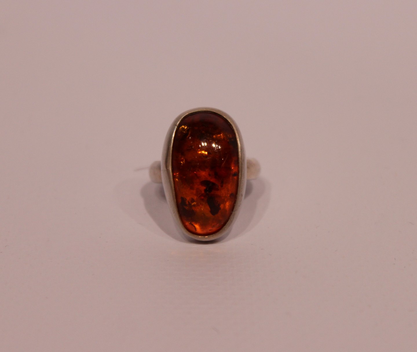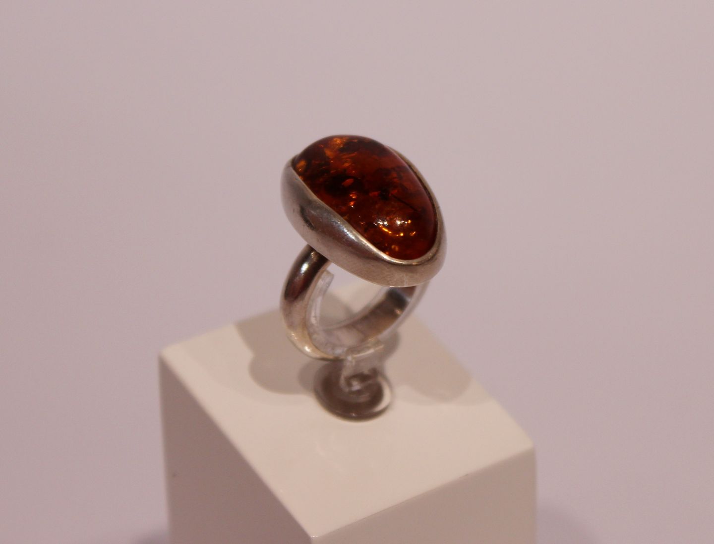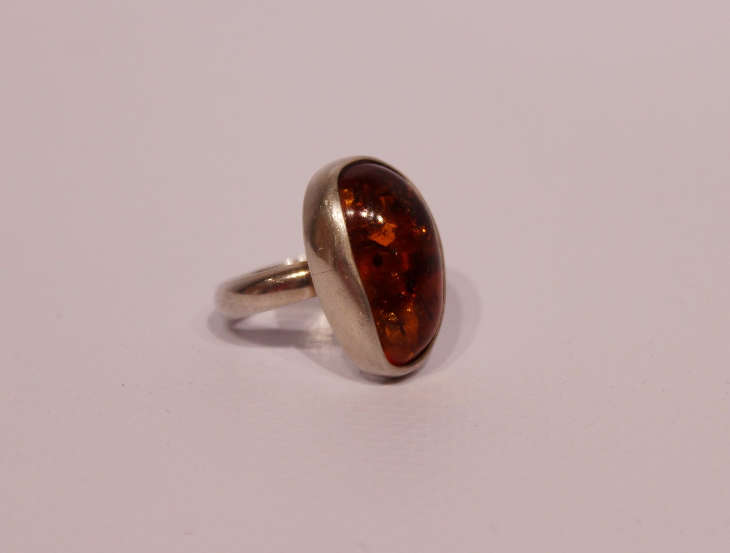 Simpel ring with piece of amber and of silver.