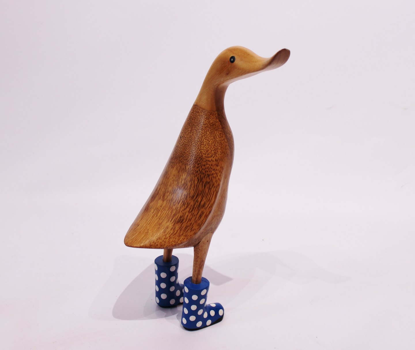 Figur i form af en And med blå gummistøvler, i bambusrod af Dcuk.