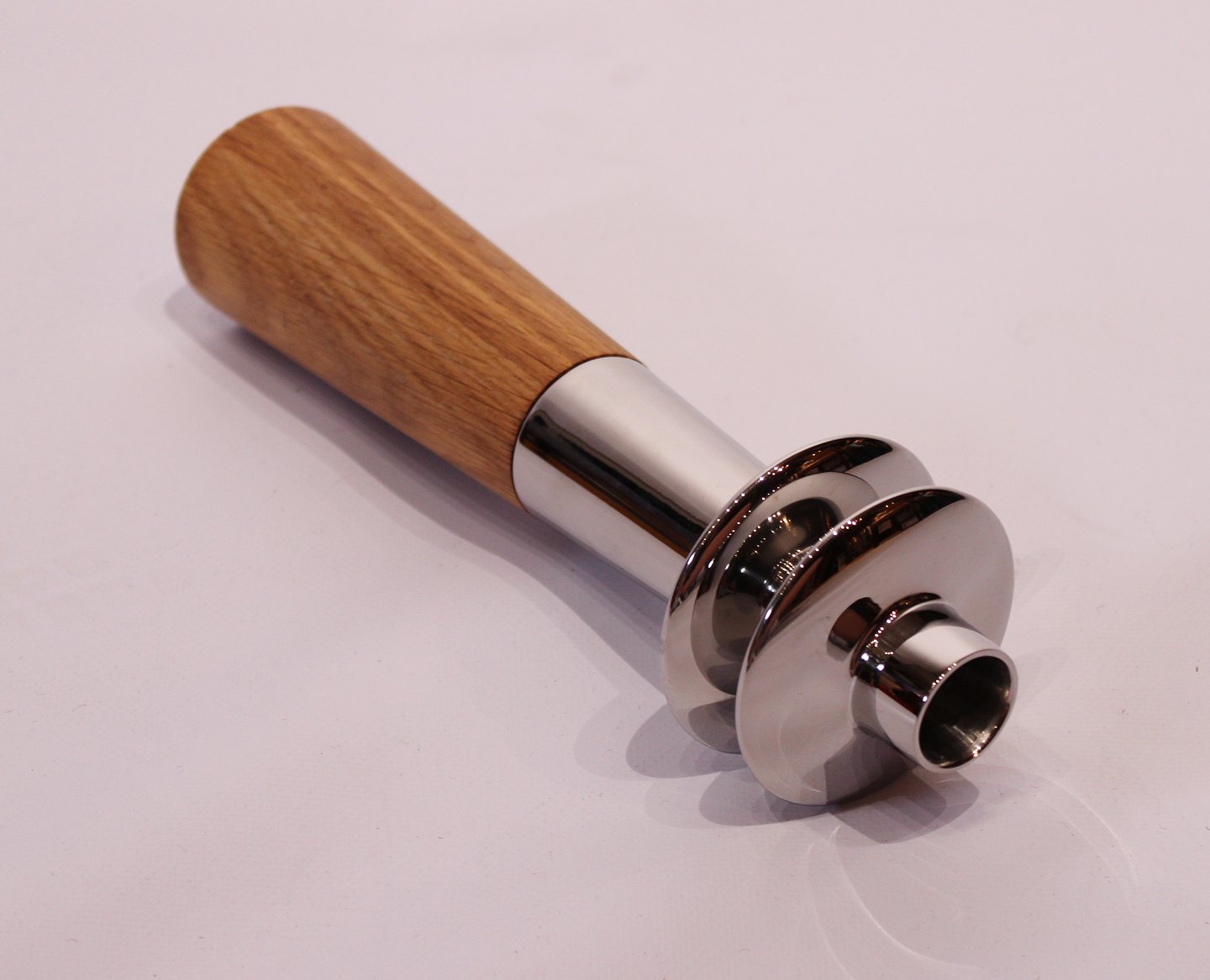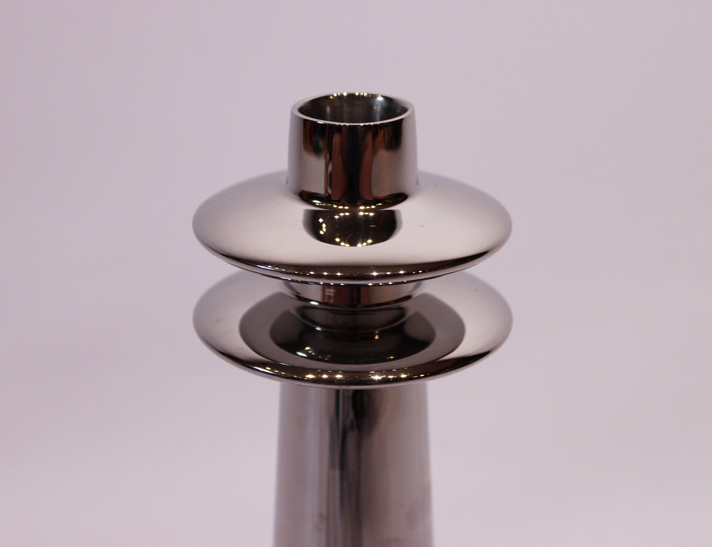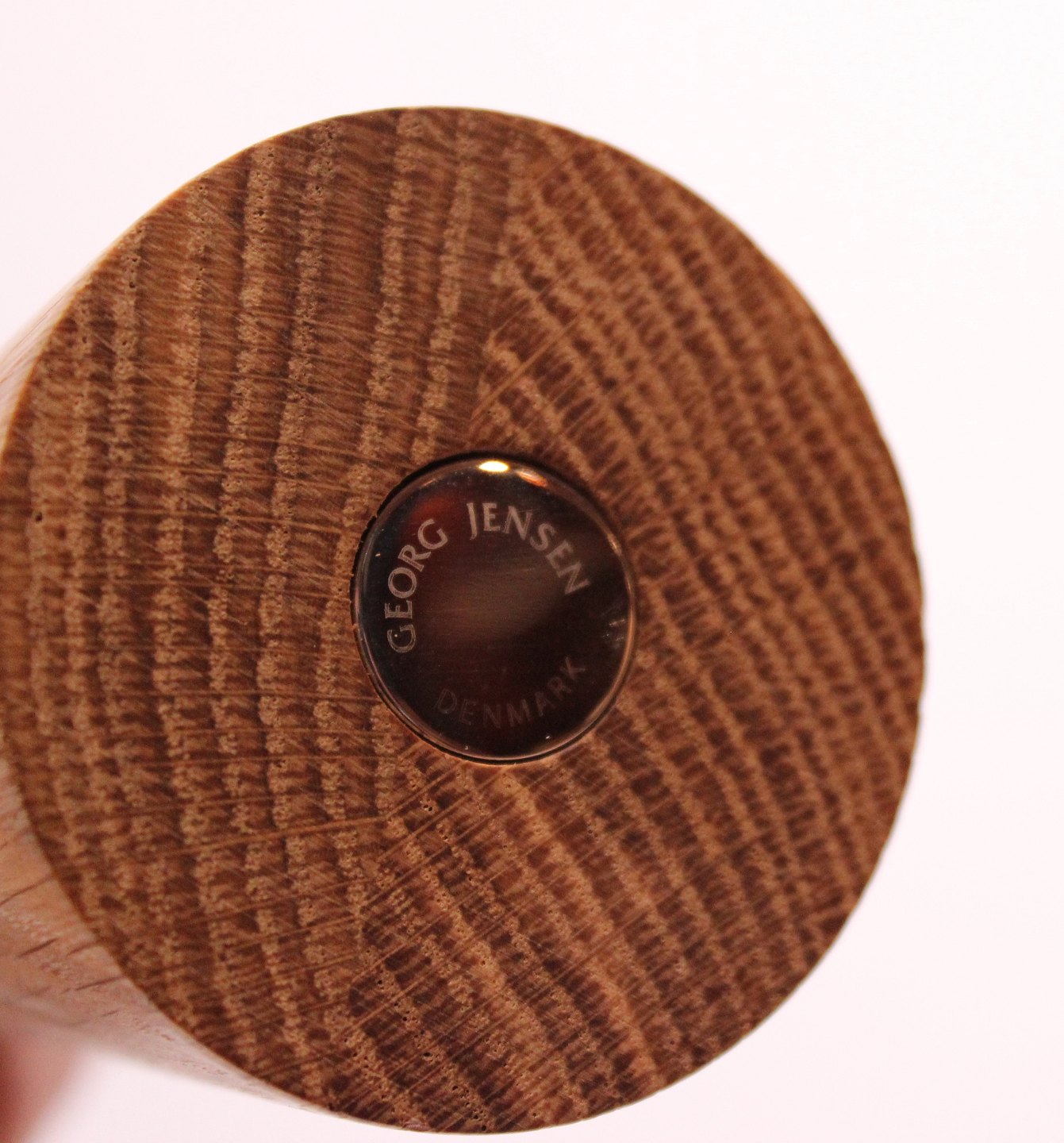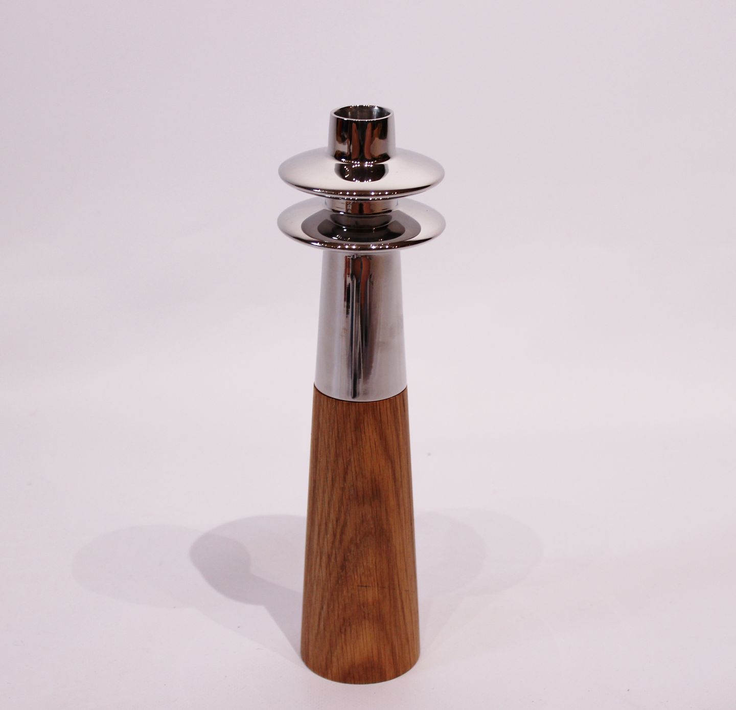 SolgtEllipse lysestage i rustfrit stål og Eg designet af Rebecca Uth for Georg Jensen.
