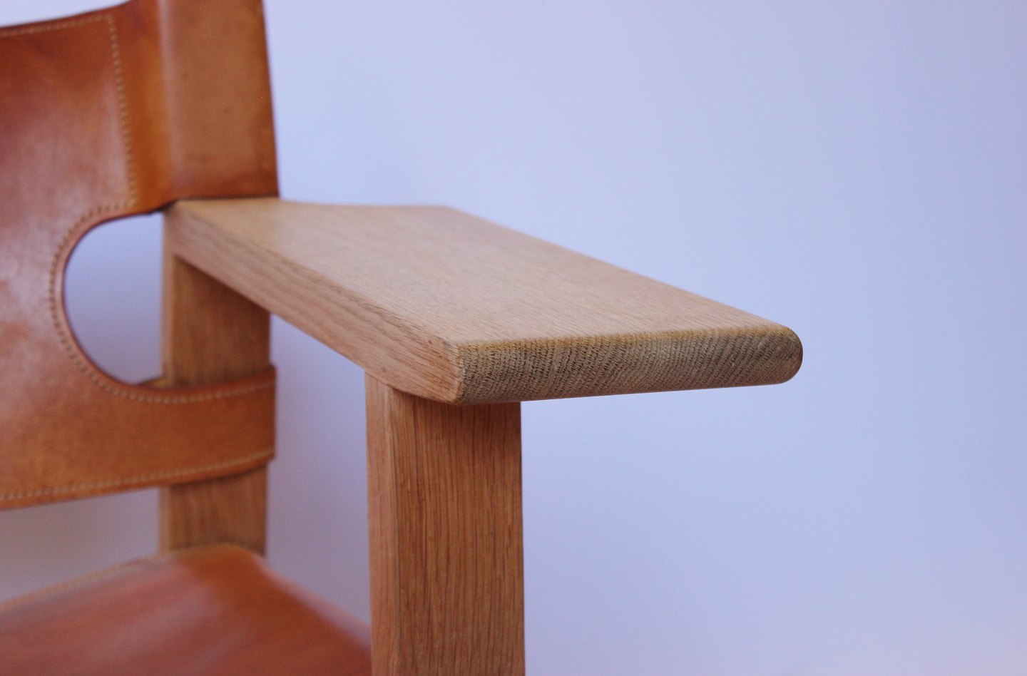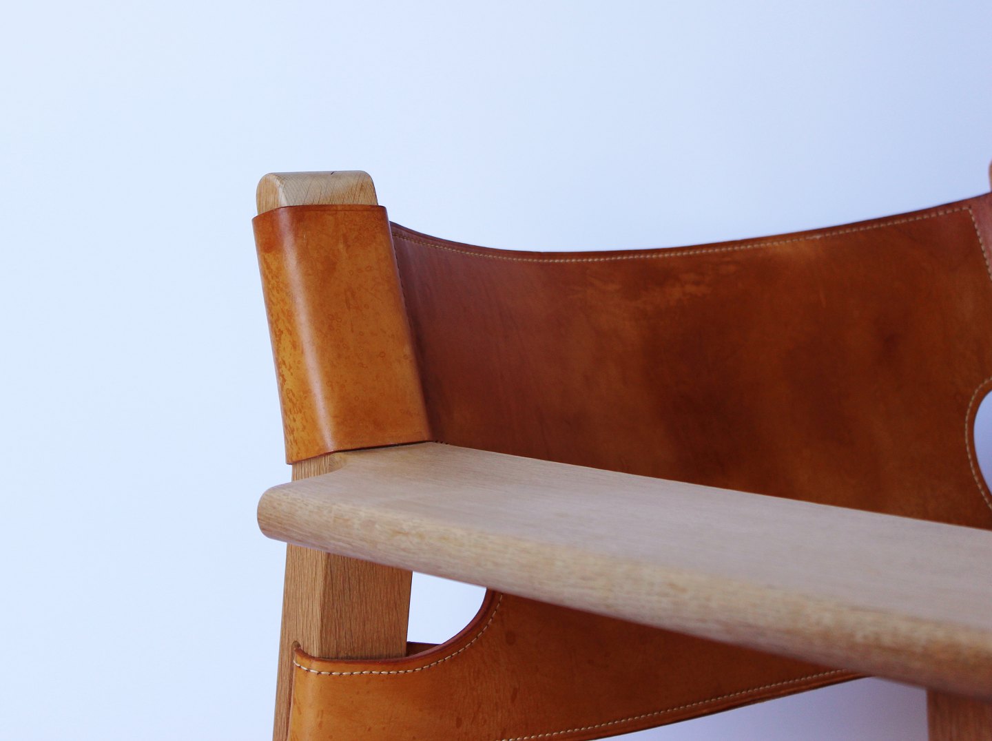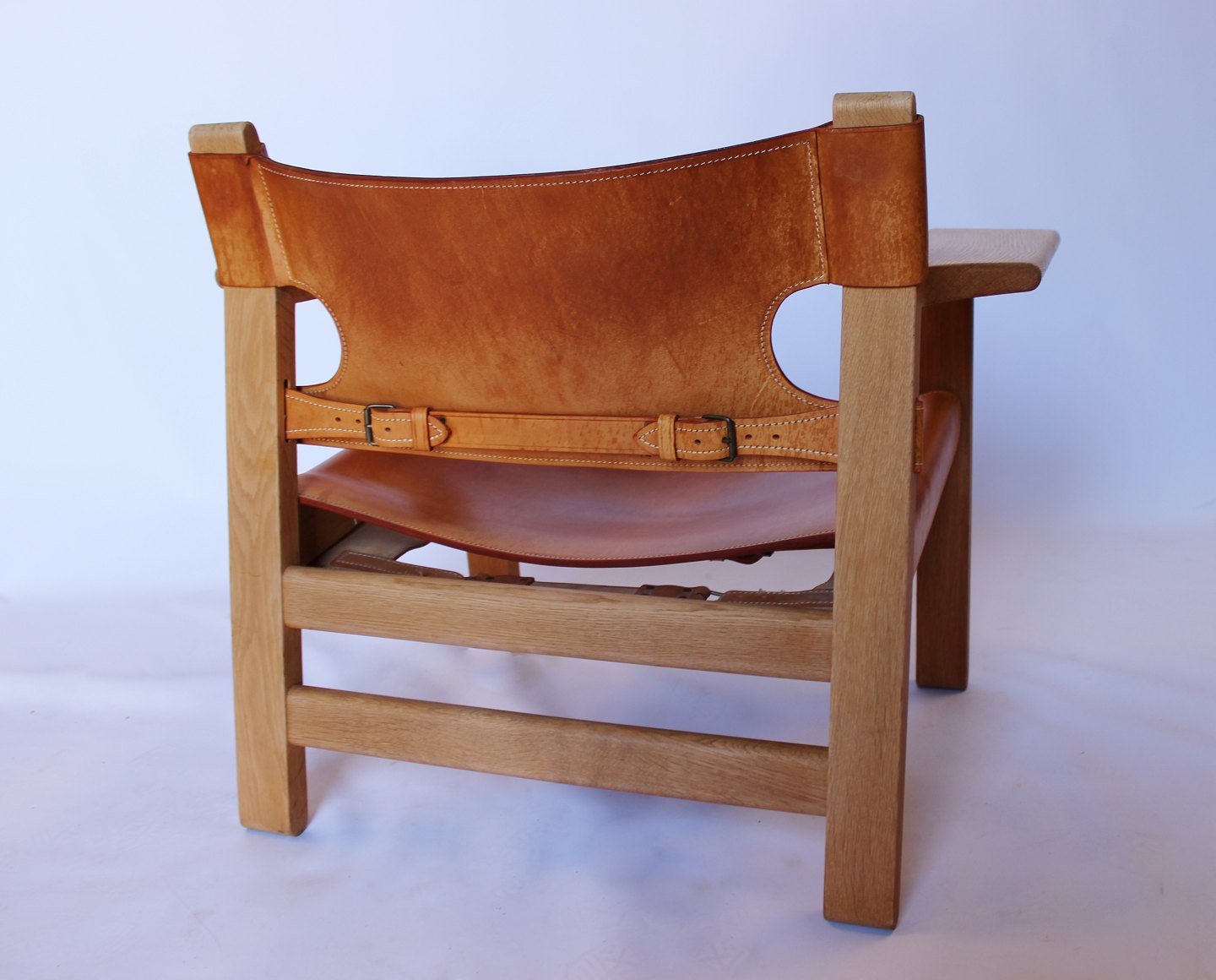 SoldThe Spanish chair, model BM2226, designed by Børge Mogensen in 1958. The chair is in oak and with cognac colored patinated leather from the 1960s.