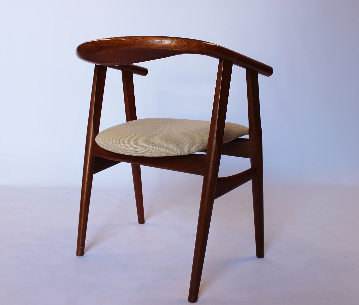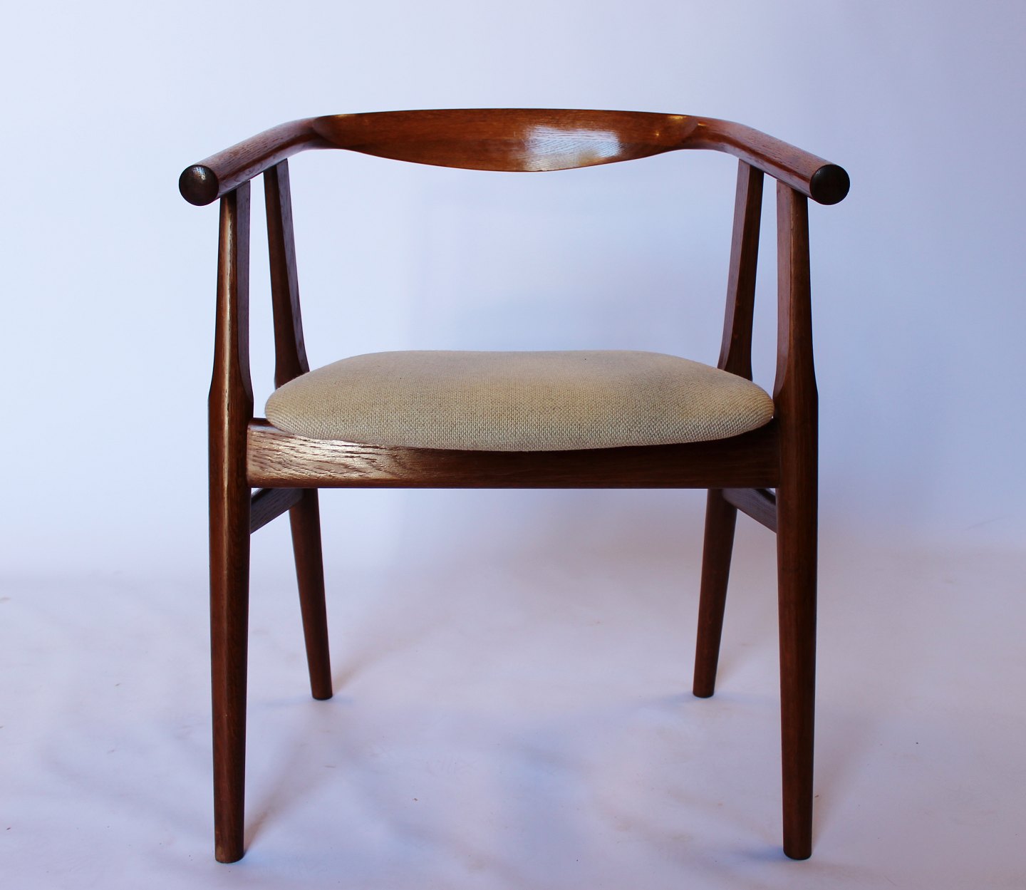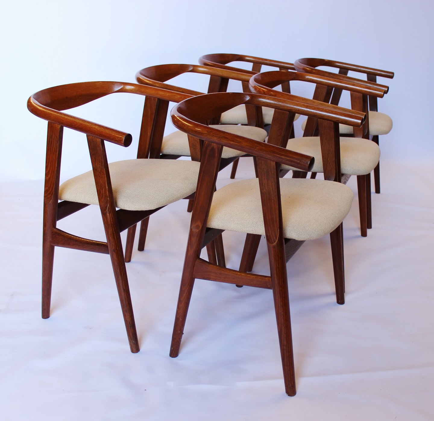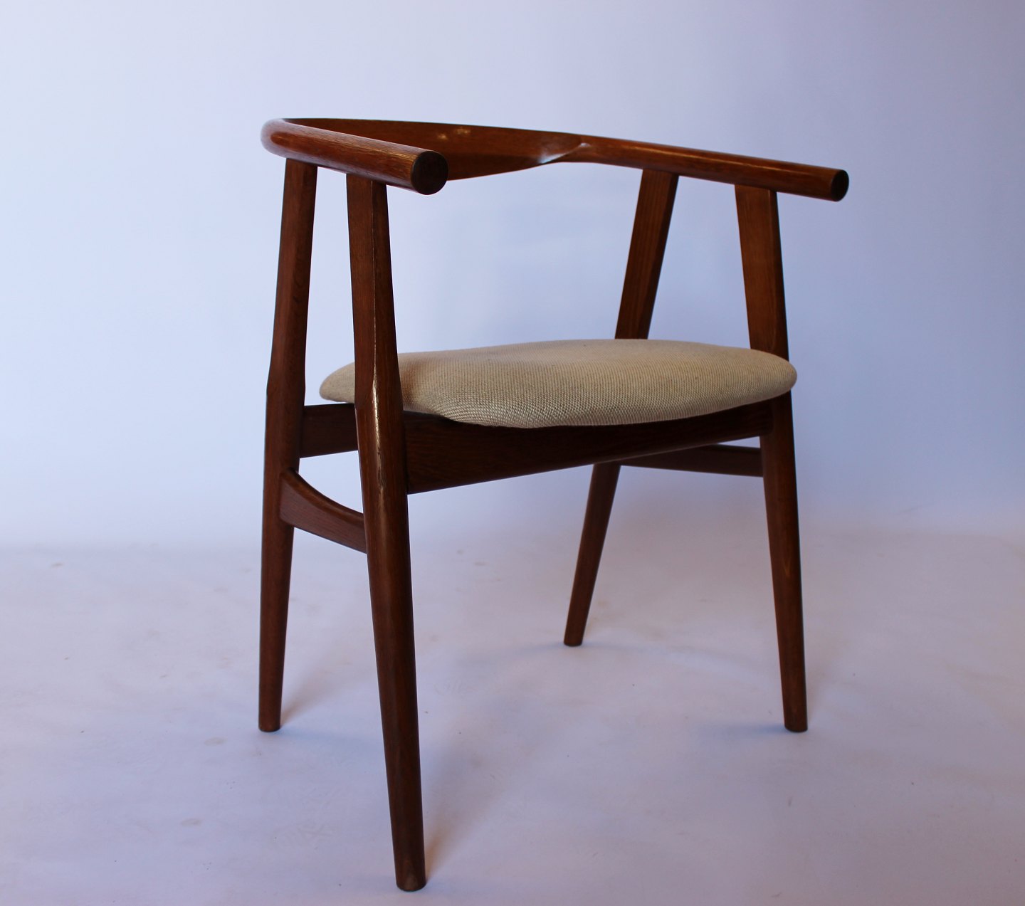 SoldSet of 6 dining room chairs, model GE525, designed by Hans J. Wegner and manufactured by Getama in the 1960s. The chairs are of oak and upholstered in light fabric.