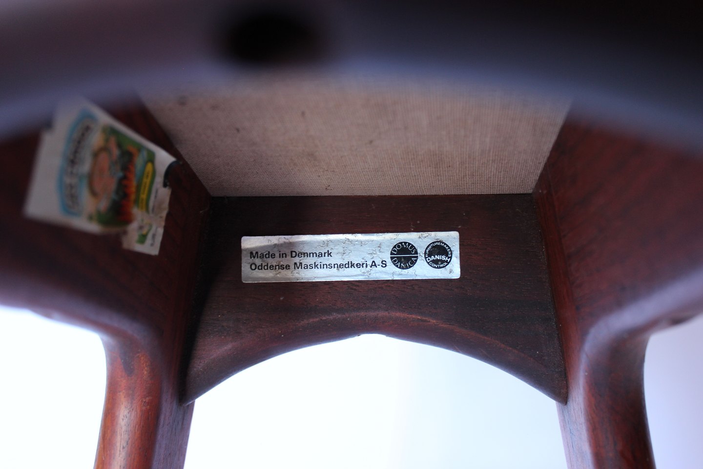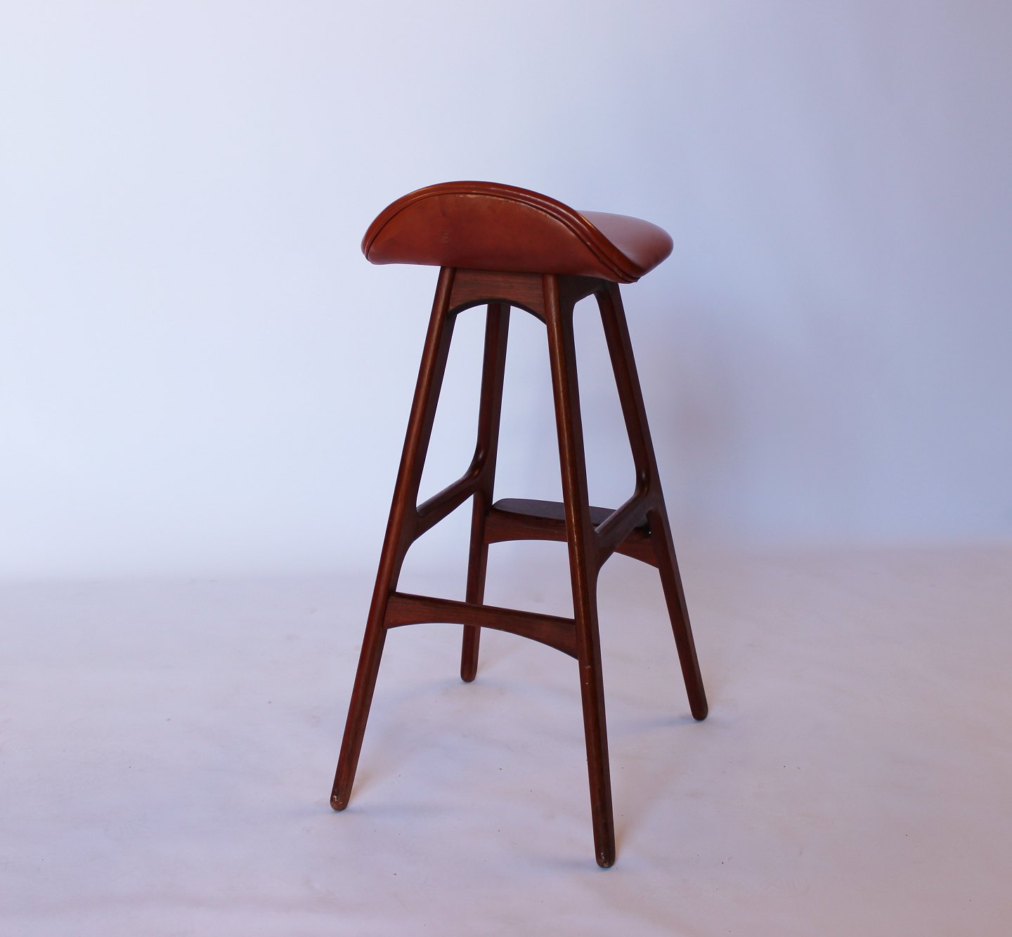 SoldBar stool, model OD61, designed by Erik Buch and manufactured by Odense furniture factory. The stools are of rosewood and elegance leather seats.