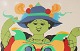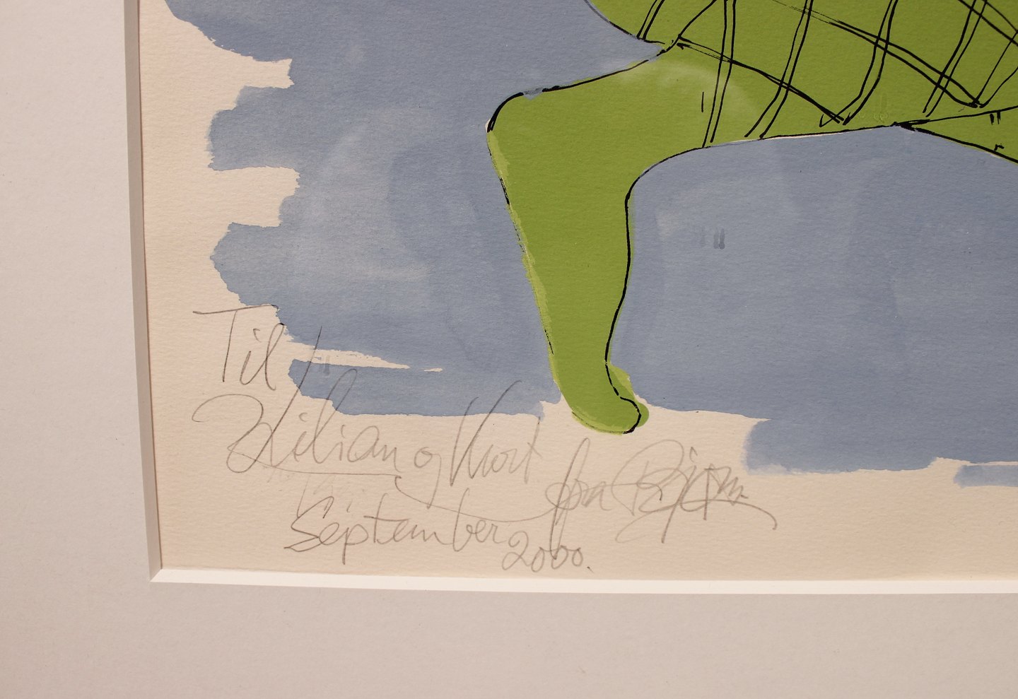Lithographic print signed by Bjørn Wiinblad with silver frame.