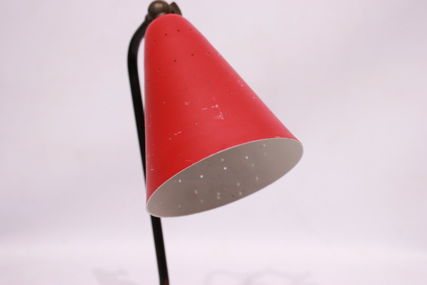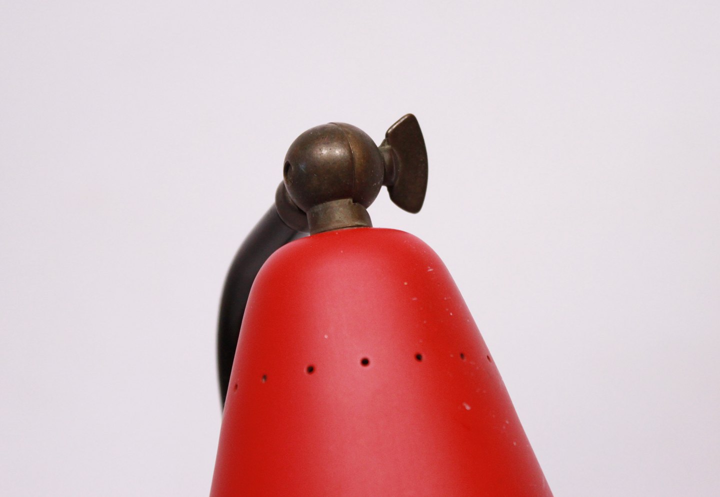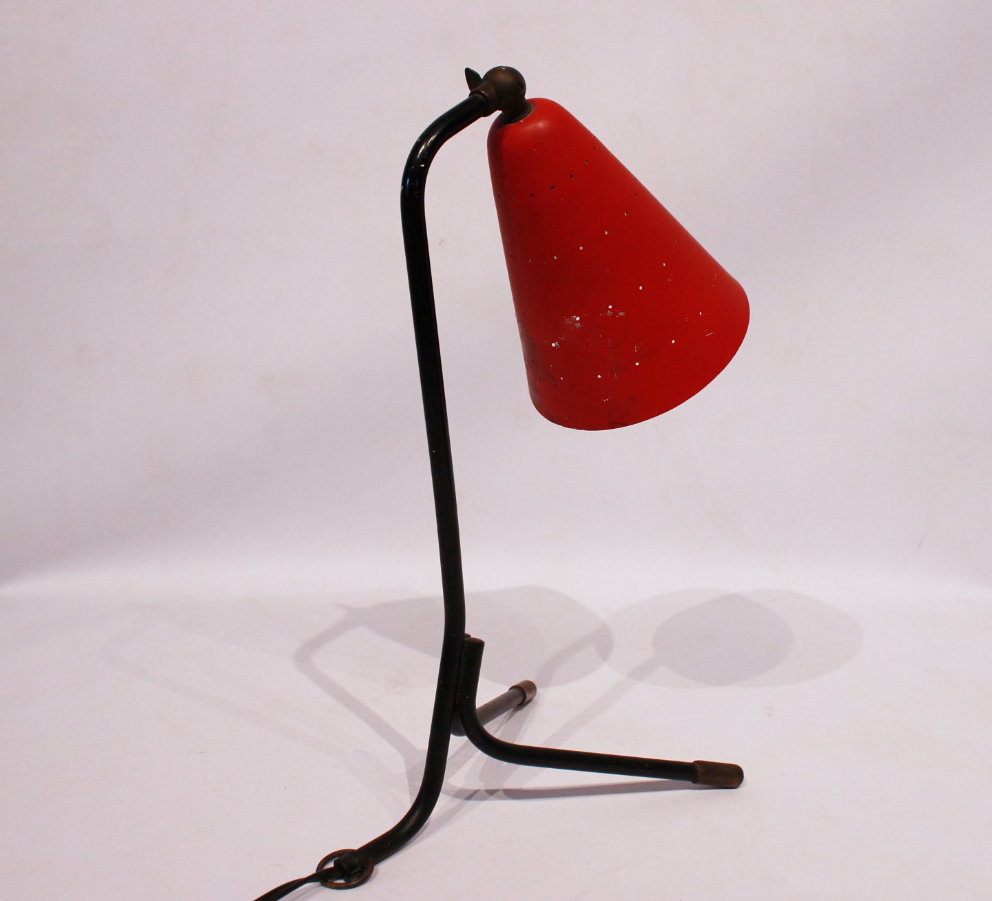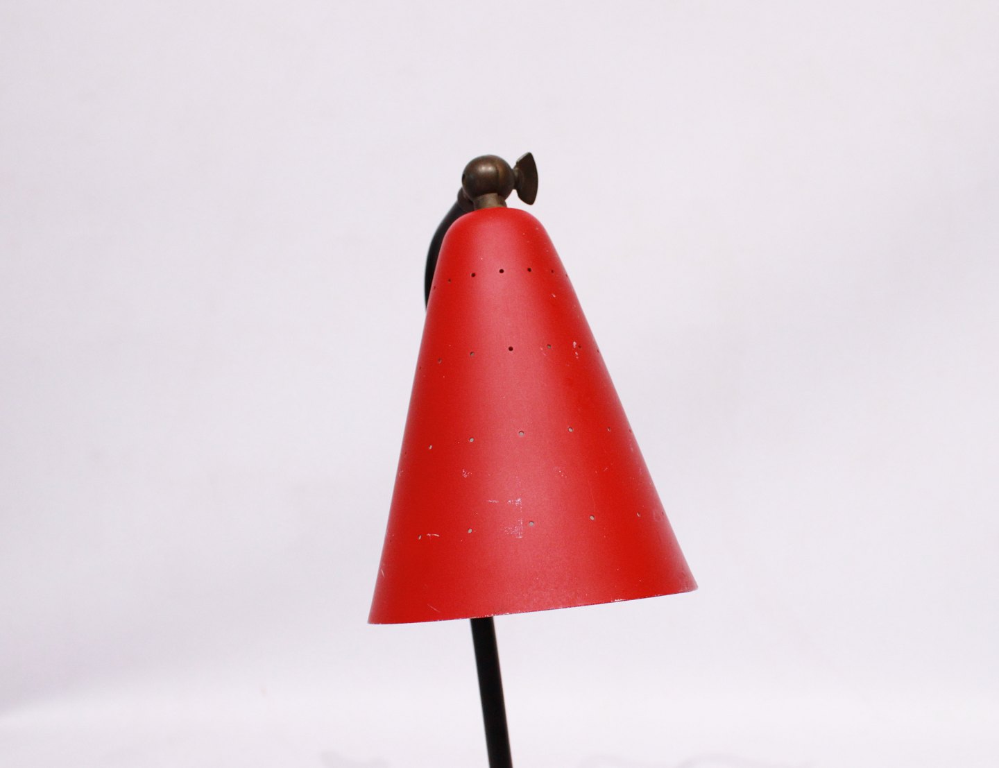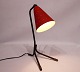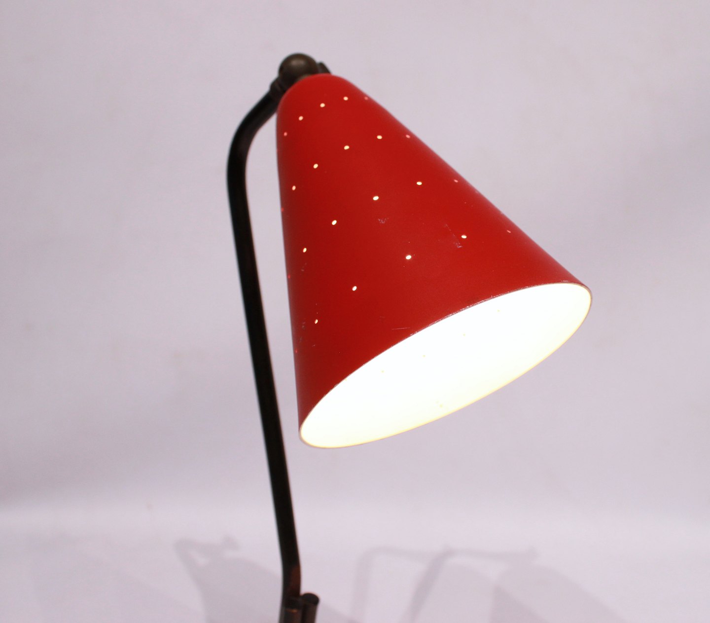 Bordlampe med rød metal skærm af Svend Aage Holm Sørensen fra 1950erne.