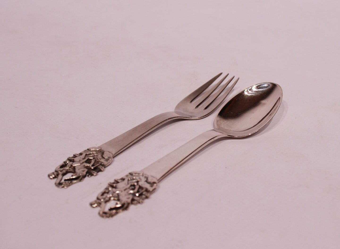 Sæt af barneske og barnegaffel med motiv af H.C. Andersens eventyr "Klodshans".