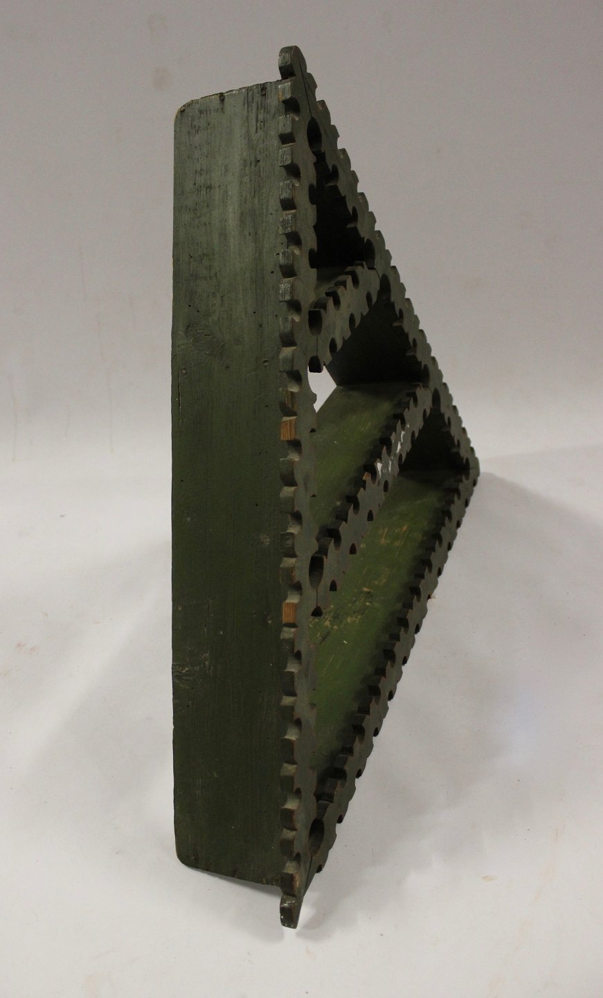SoldTriangular shelf in dark green, beautifully decorated and in great antique condition.