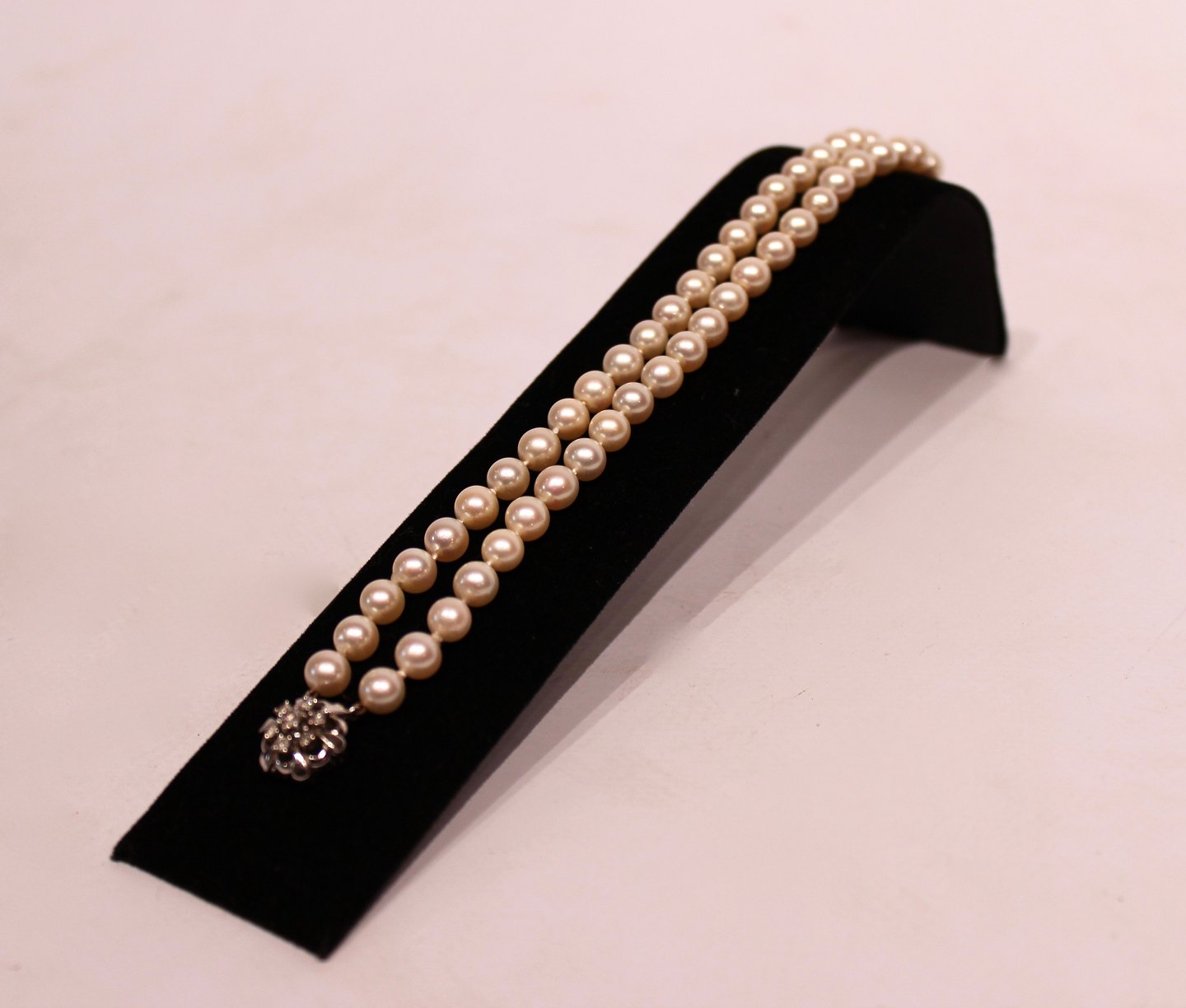 Armbånd af kulturperler med lås i 14 kt. hvidguld og brillianter 7 stk ialt