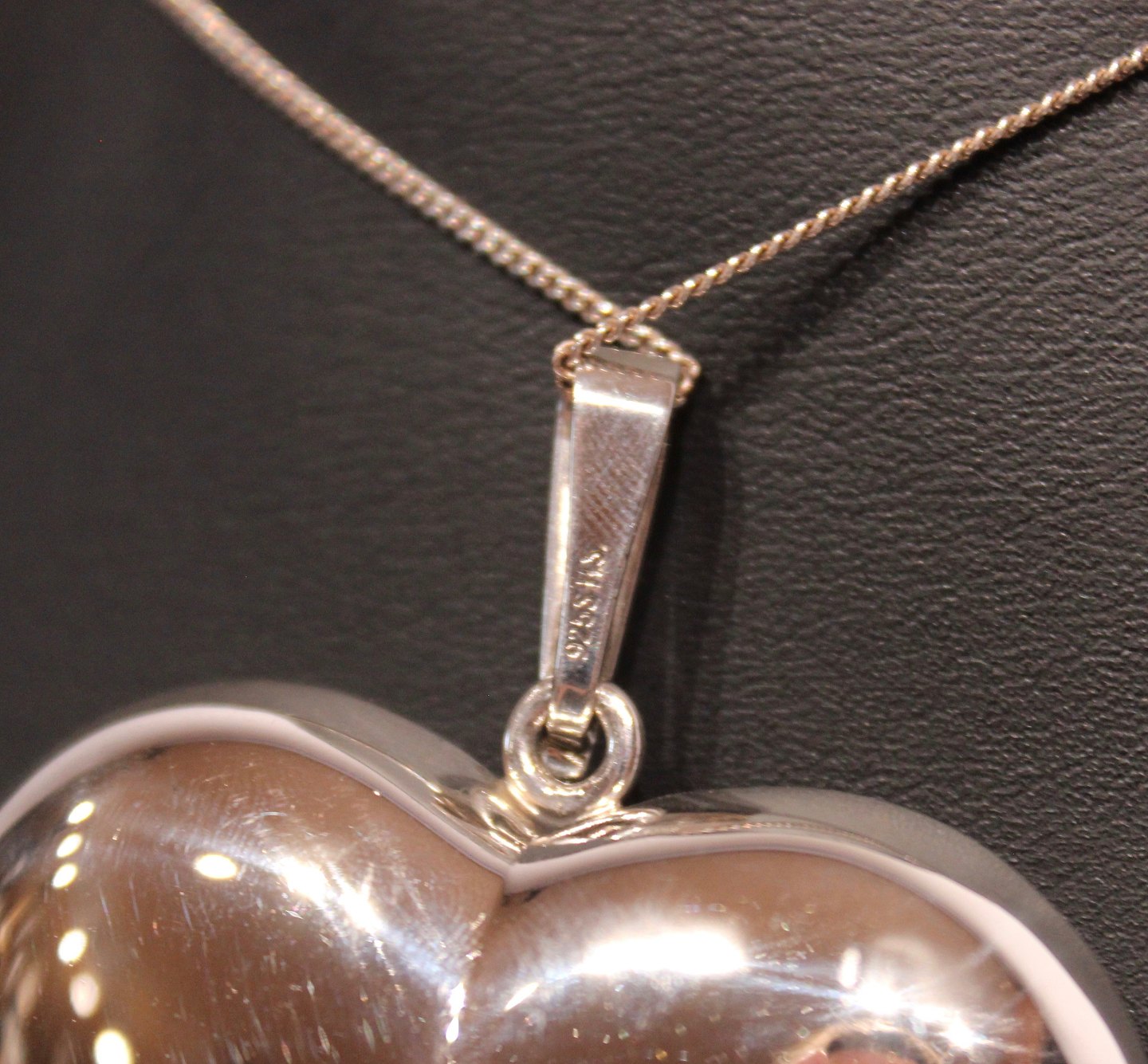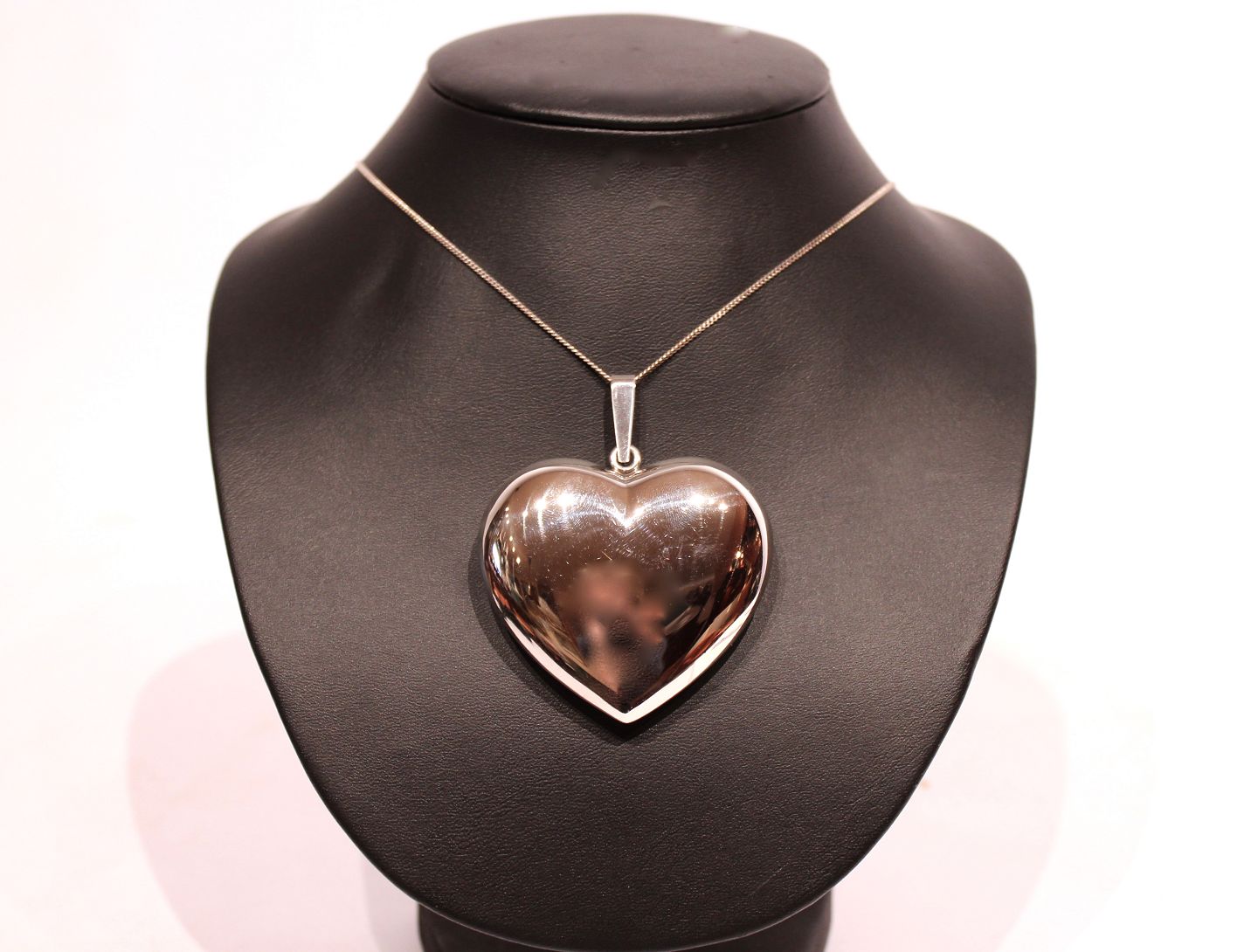 SolgtStort vedhæng i form af et hjerte, stemplet HS i 925 sterling sølv. Lignende kæde kan købes separat.