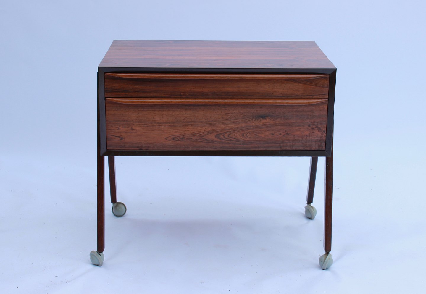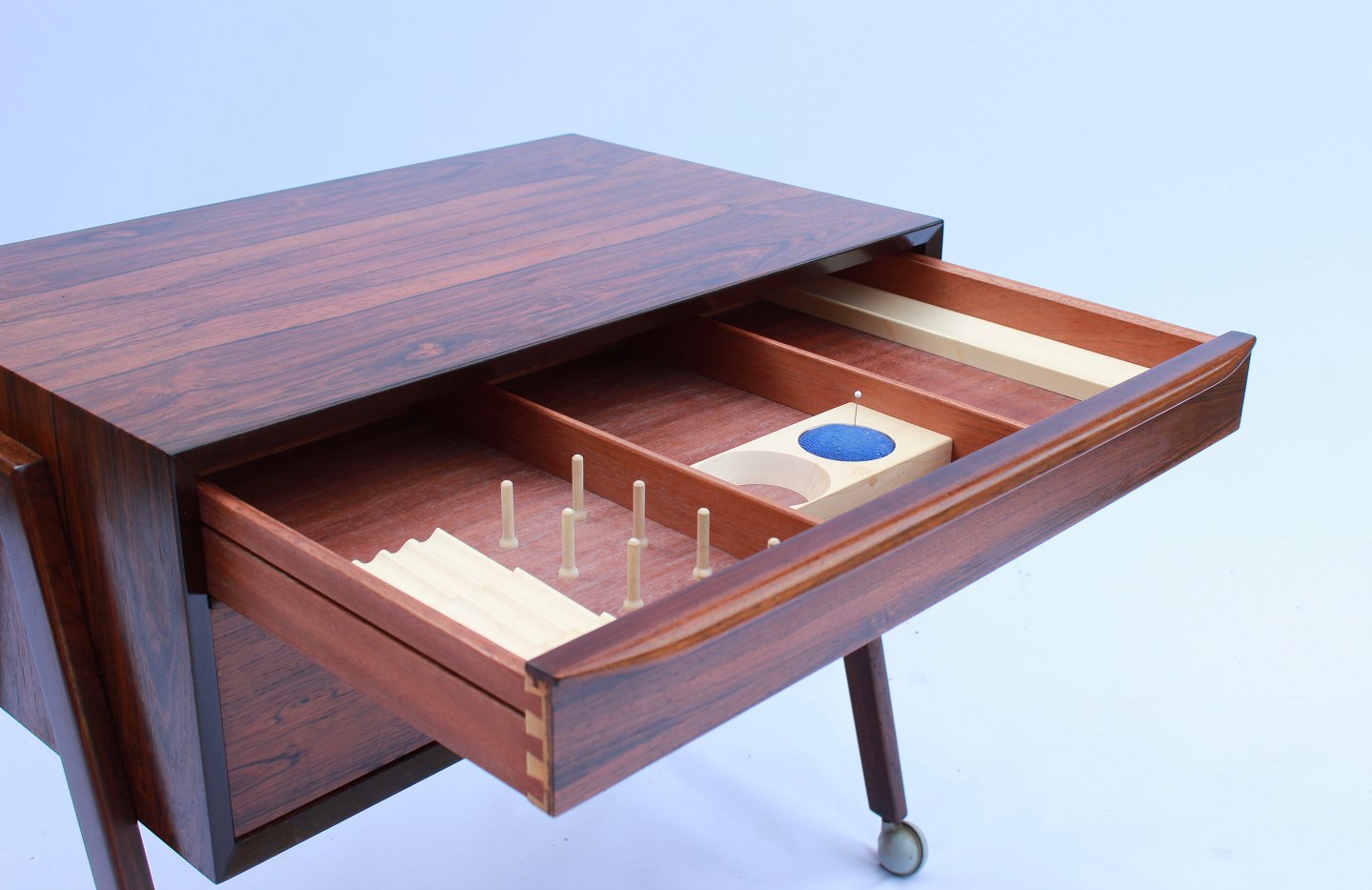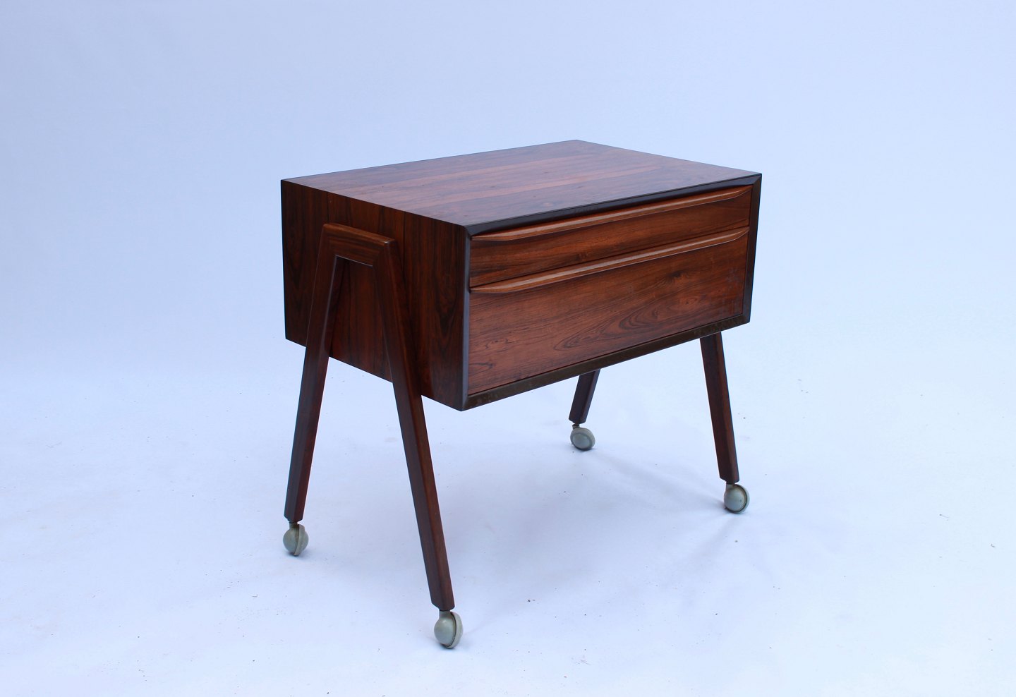 Lille sybord i palisander af dansk design fra 1960erne. Bordet er i flot brugt stand.