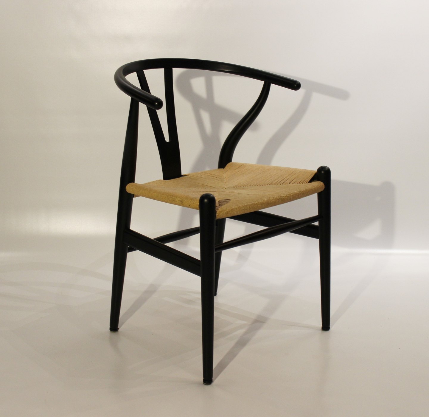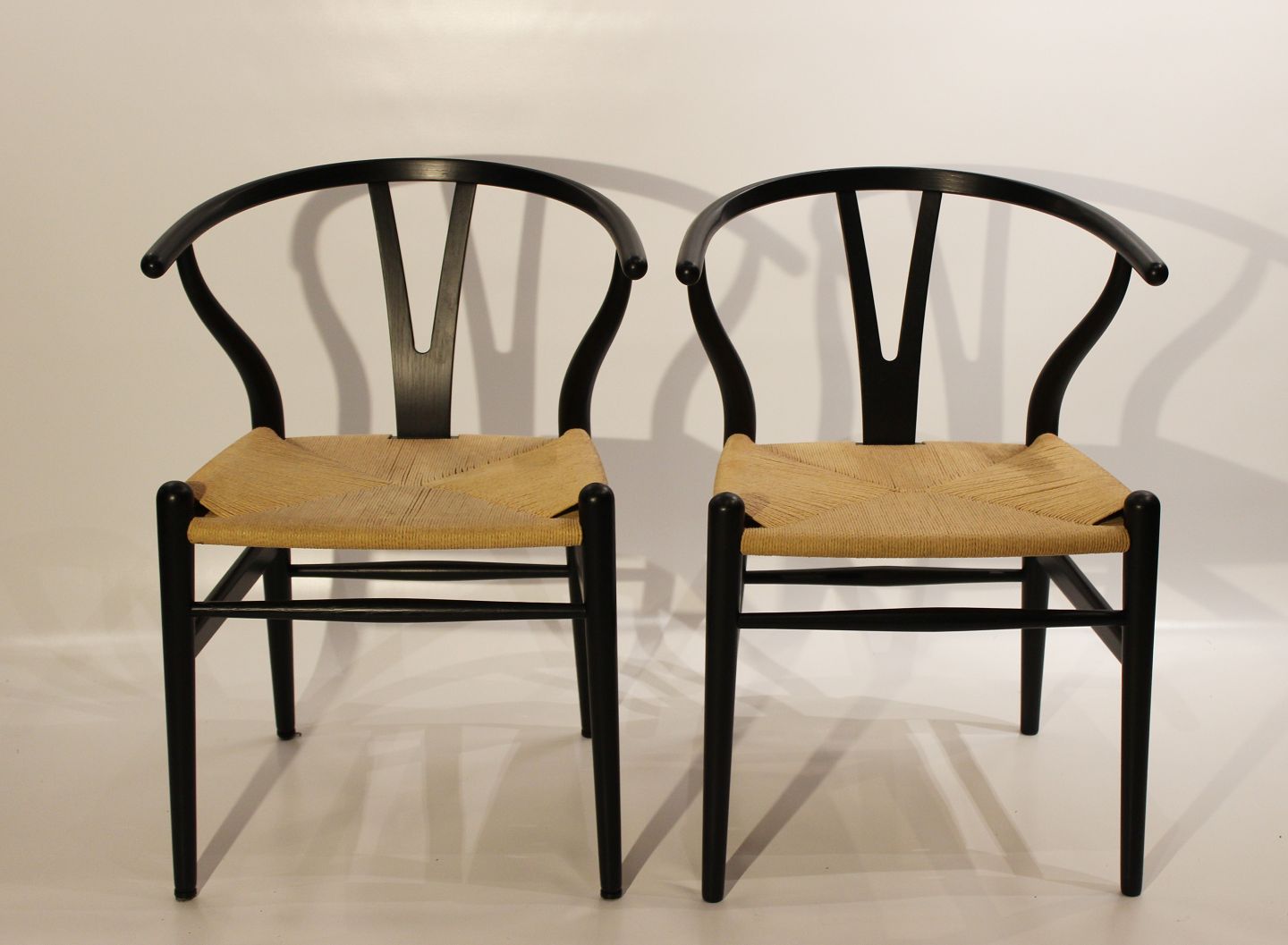 SoldA pair of wishbone chairs, Y-chair, model CH24, designed by Hans J. Wegner in the 1950s and manufactured by Carl Hansen & Son in 2008. The chairs are with papercord seat and black painted ash.