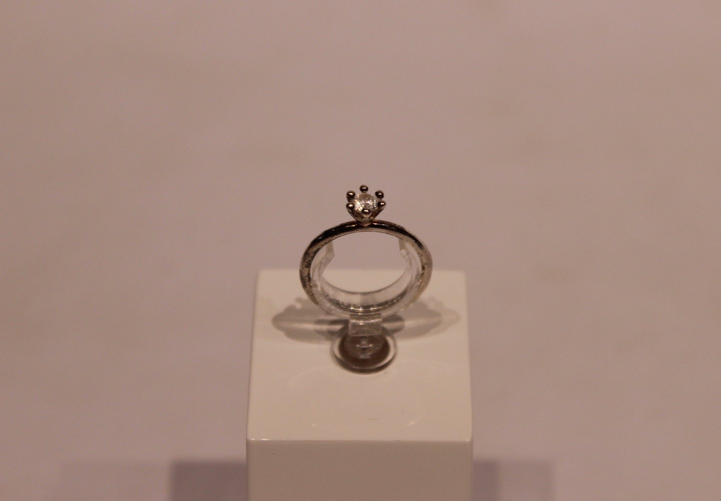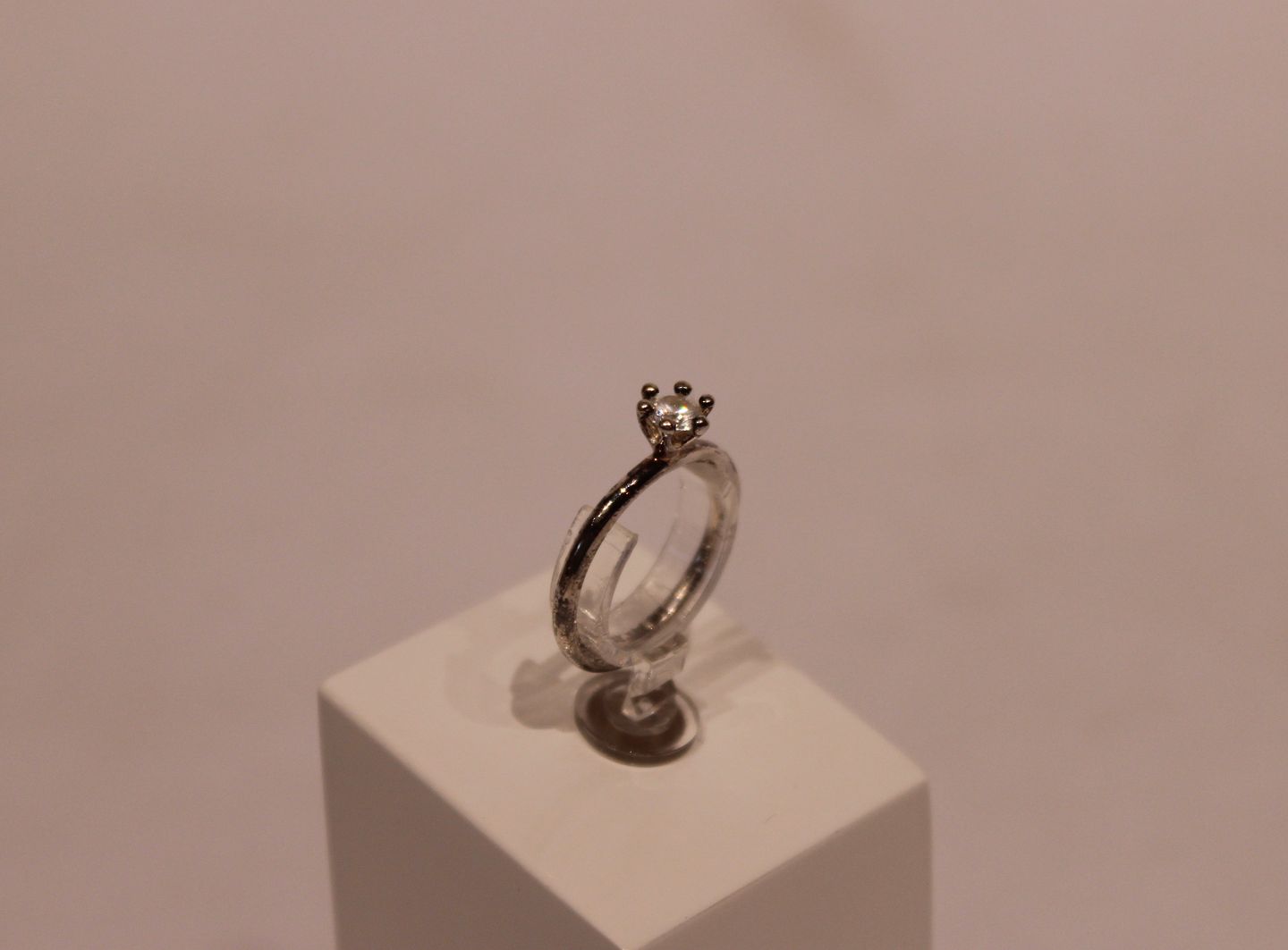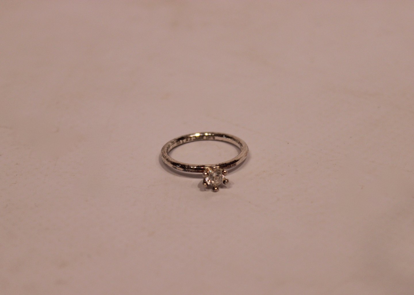 Ring of 925 sterling silver with clear stone, stamped SPJ.