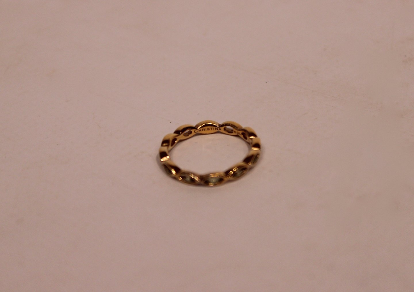SoldGilded 925 sterling silver ring with green stones by Christina Jewelry.