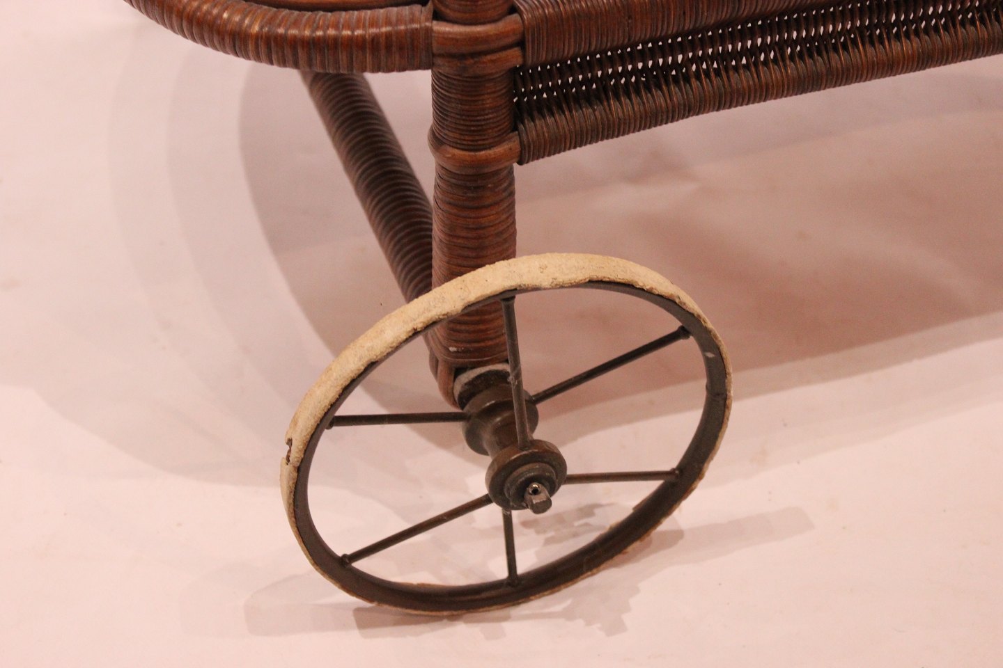 Antique french bar table of papercord and dark wood from around the 1920s. The table is in great vintage condition.