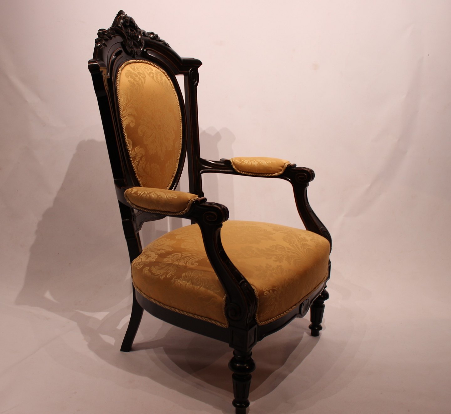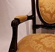 SolgtArmstol i stilen rokoko af Mahogni og gult stof. Stolen er i flot brugt stand.