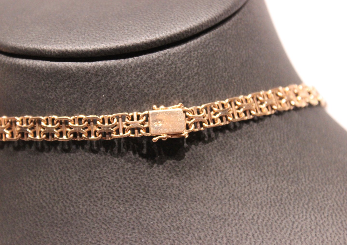 x/with stick necklace in graduation of 8 ct. gold. The chain is in great vintage condition.