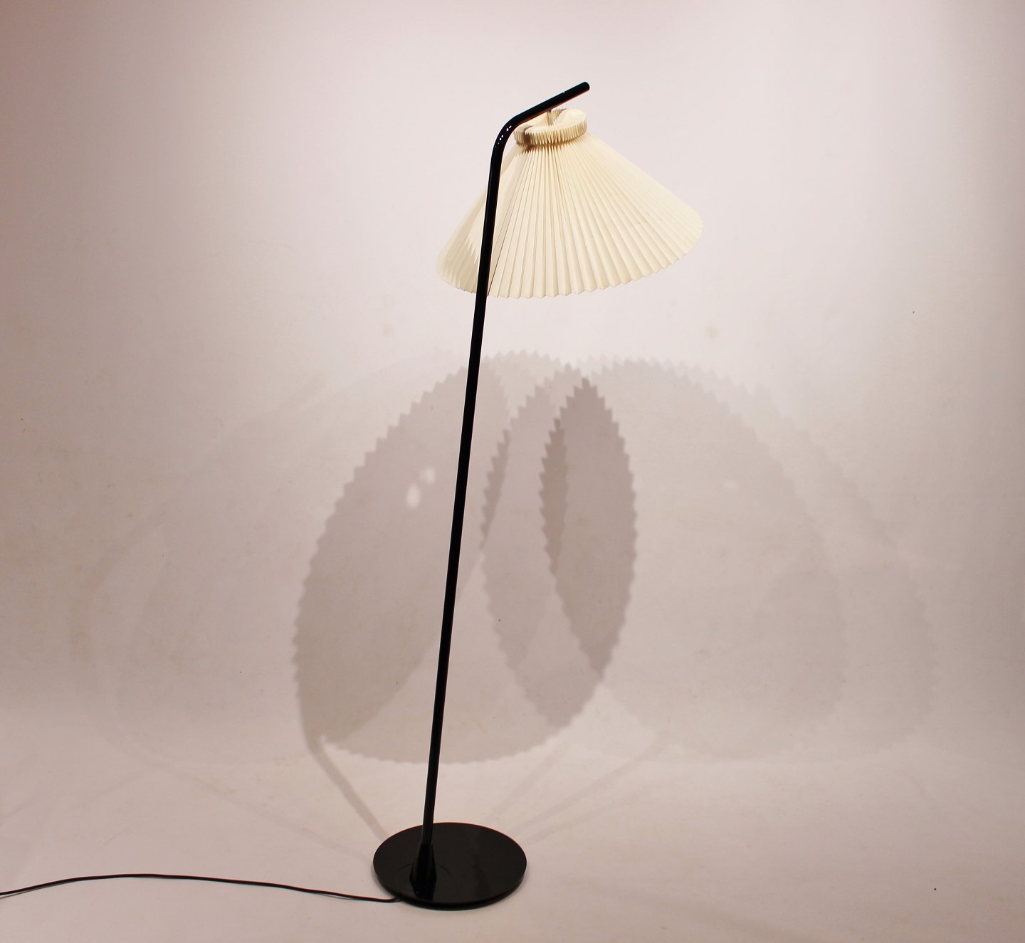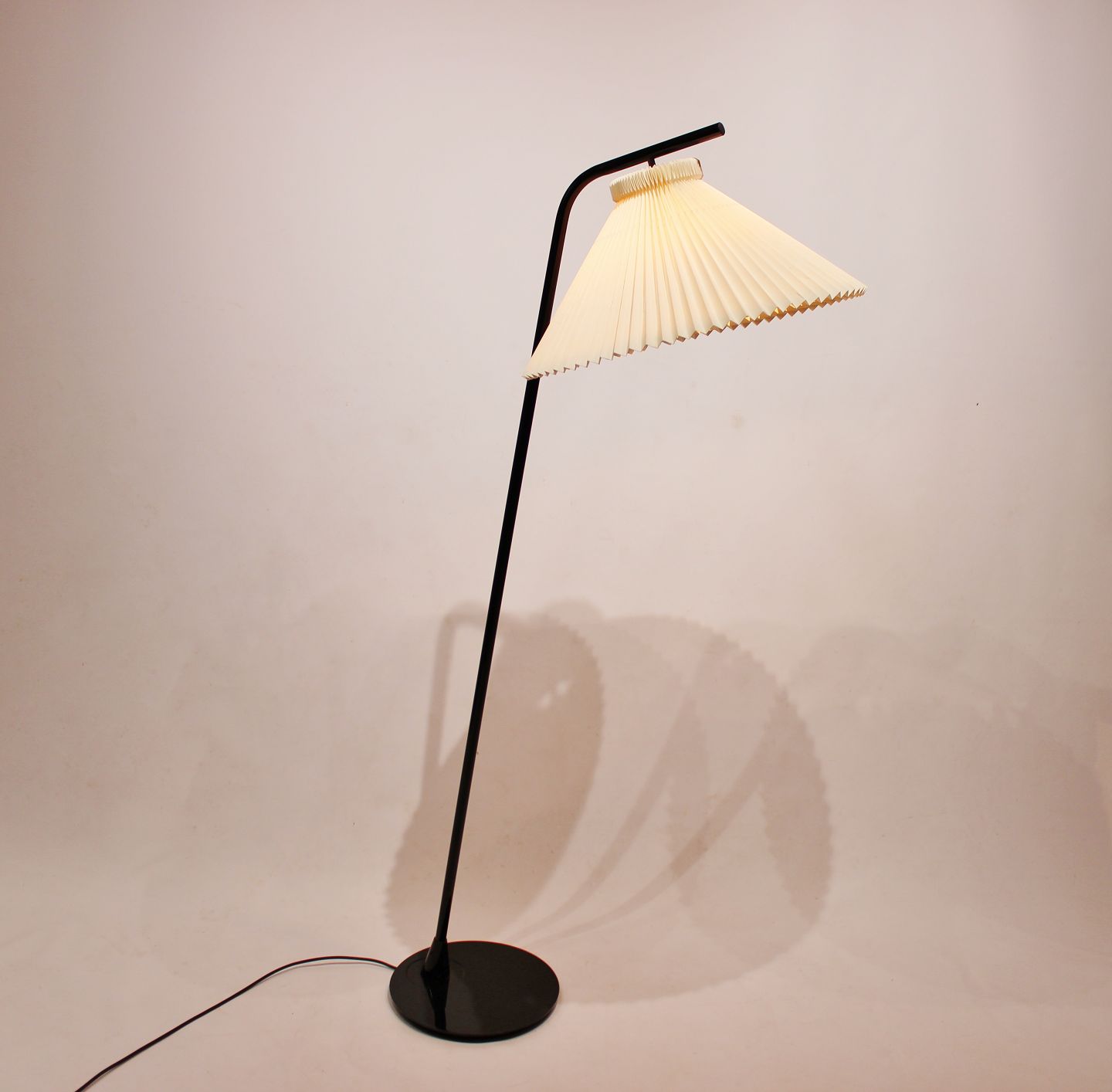SolgtStanderlampe af dansk design fra 1980erne med skærm af Le Klint. Lampen er i i flot brugt stand og med lysdæmper funktion.