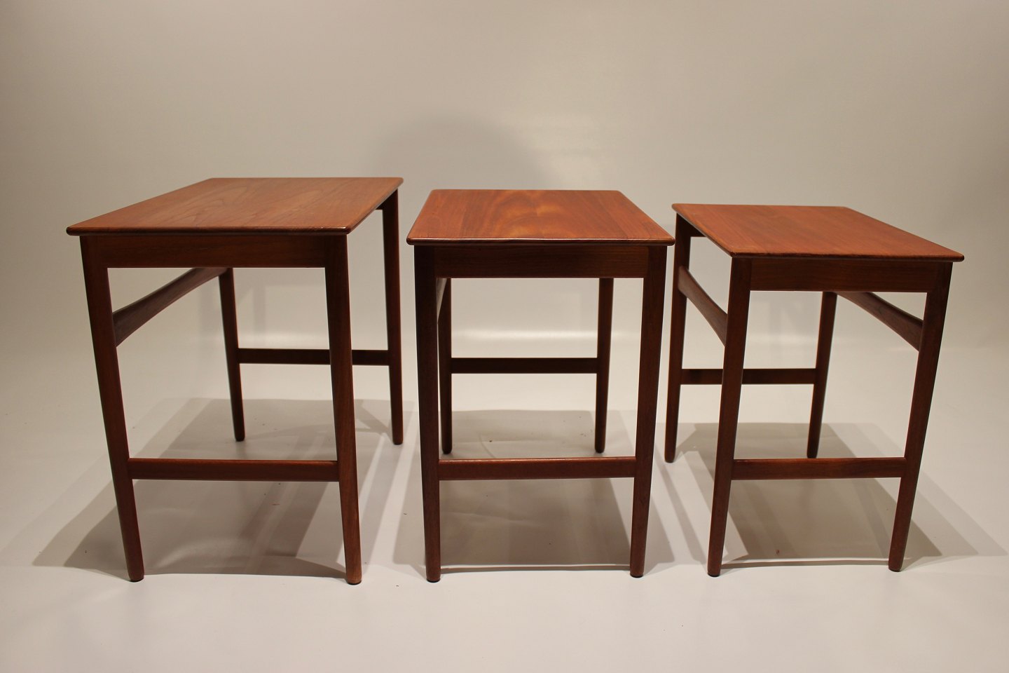 SoldSet of nesting tables in teak designed by Hans J. Wegner and from the 1960s. The tables are in great vintage condition.