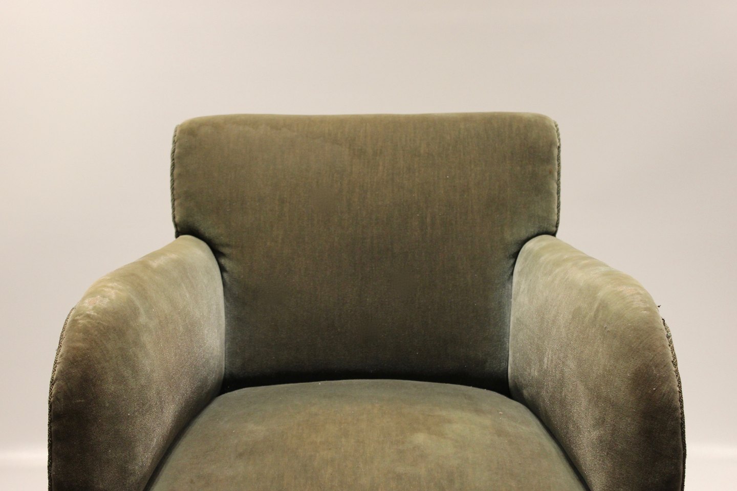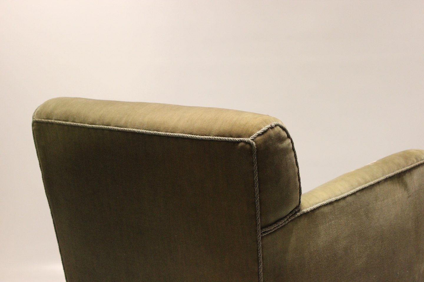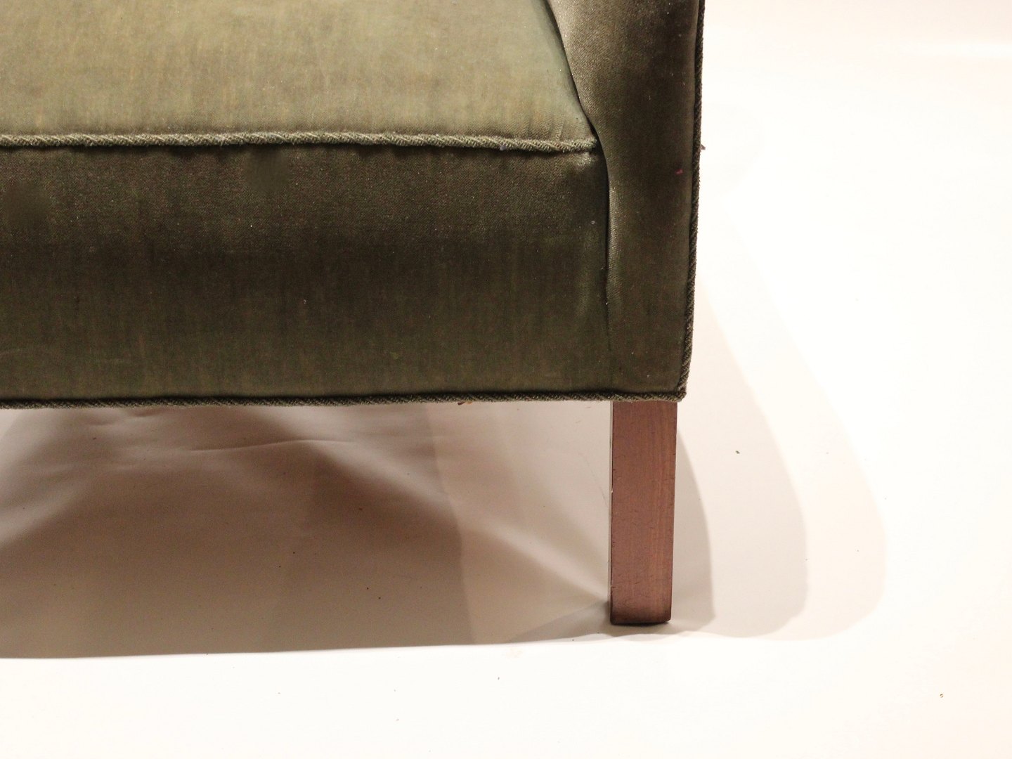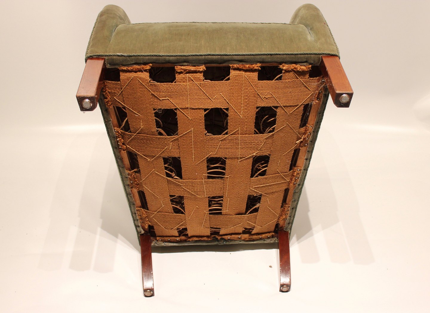 SolgtLænestol polstret i grønt stof af dansk design fra 1960erne. Stolen er i flot brugt stand.