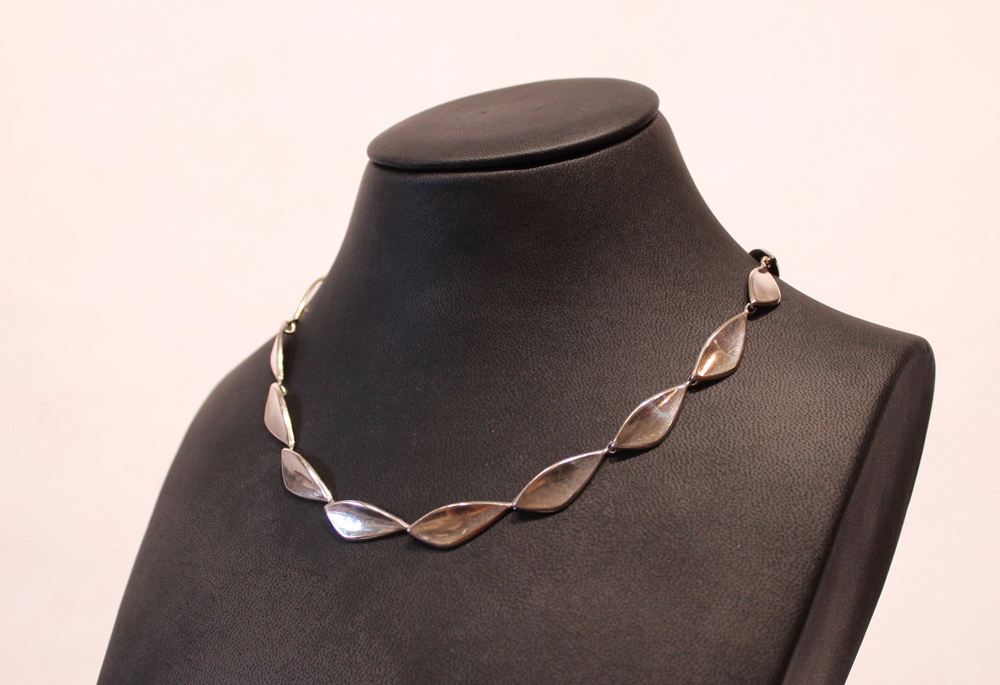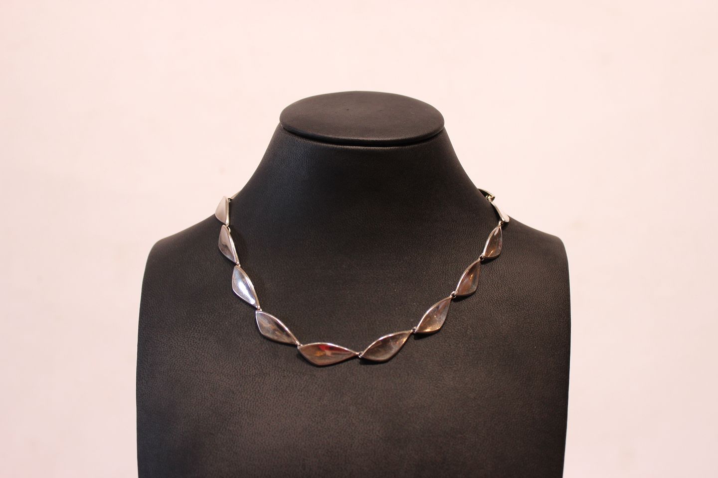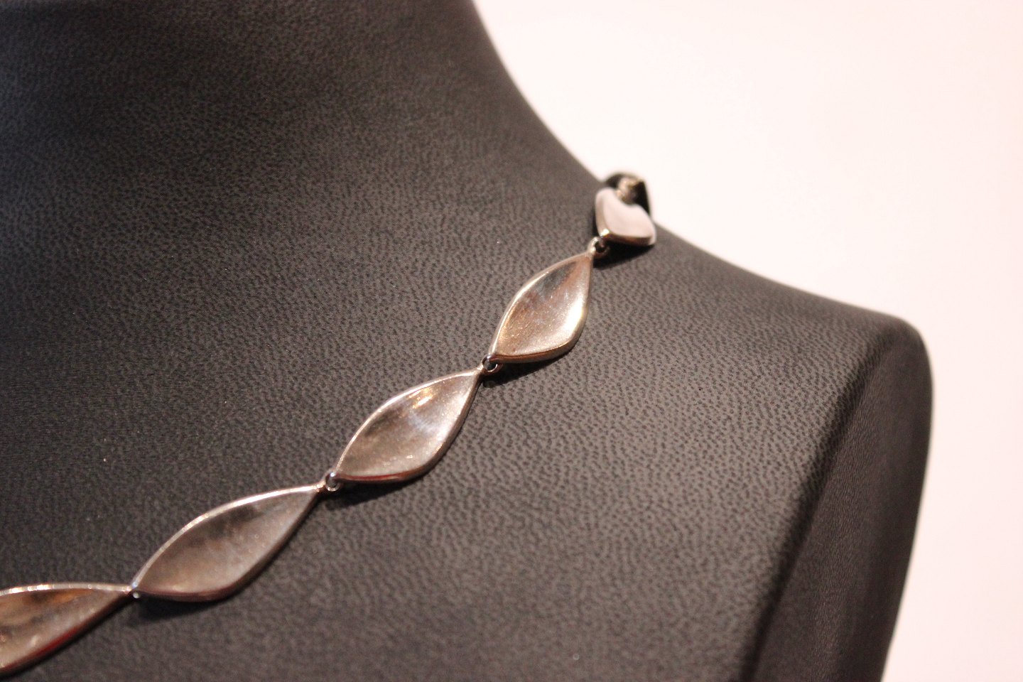 Leddelt halskæde af sterling sølv, i flot brugt stand.