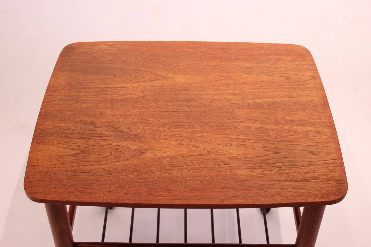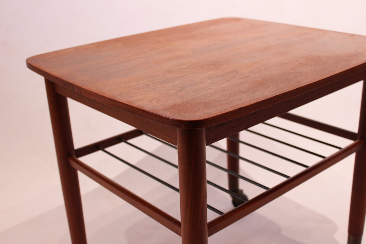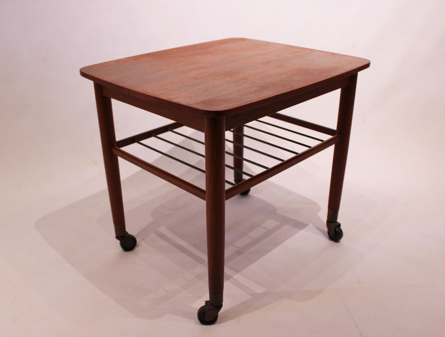Sidebord på hjul med hylde af teak og af dansk design fra 1960erne.