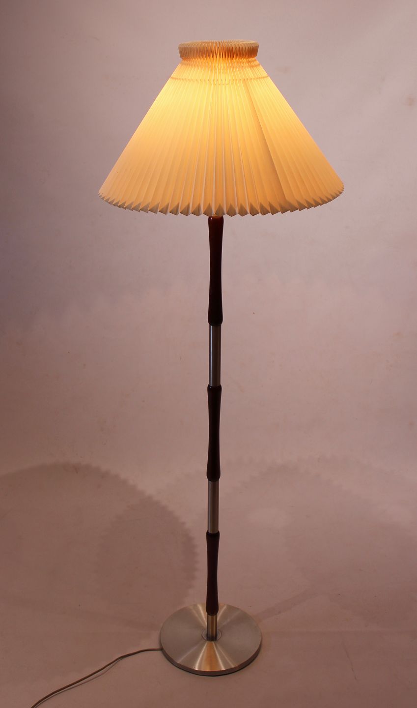 SoldTall floor lamp of aluminum and rosewood, of danish design from the 1960s. The lamp is in great vintage condition.