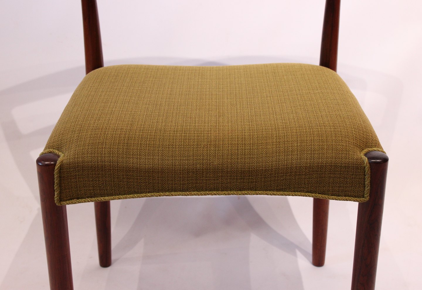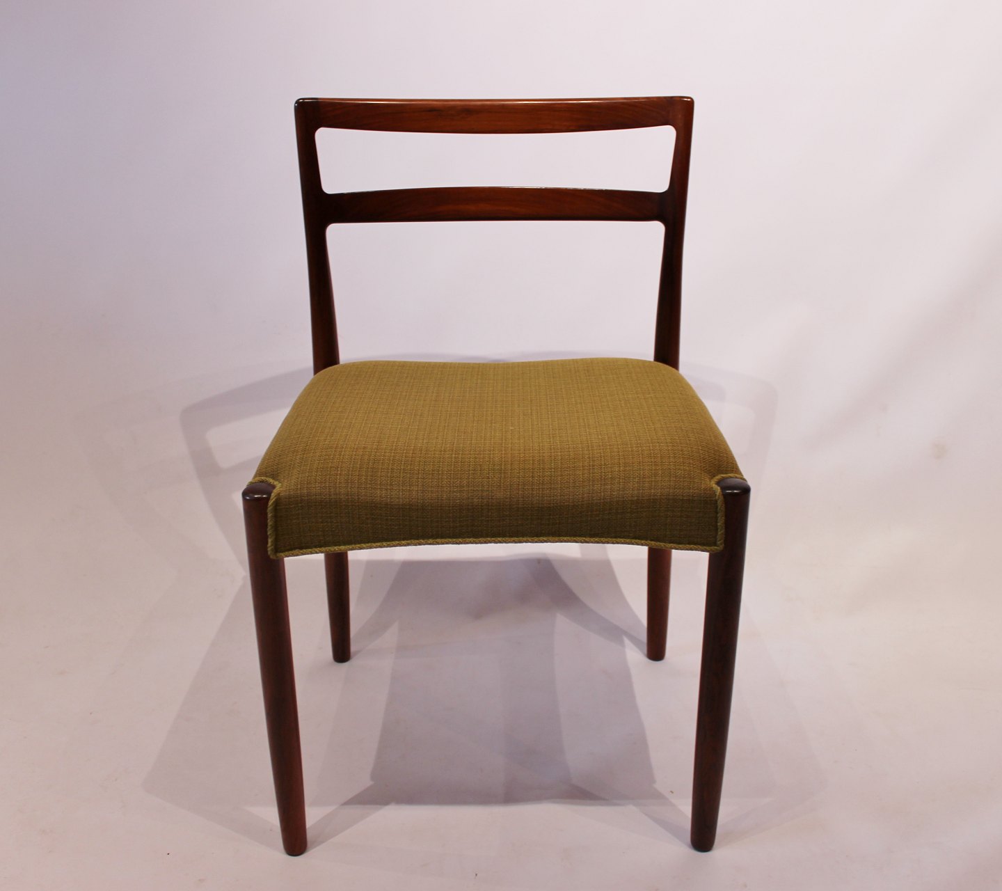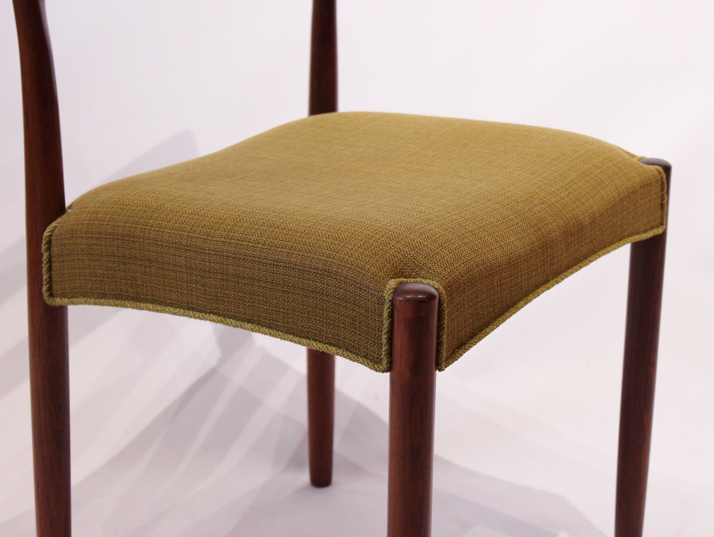 SoldA set of dining room chairs of rosewood and upholstered with green fabric, designed by Knud Færch from the 1960s. The chairs are in great vintage condition and numbered 6264.
