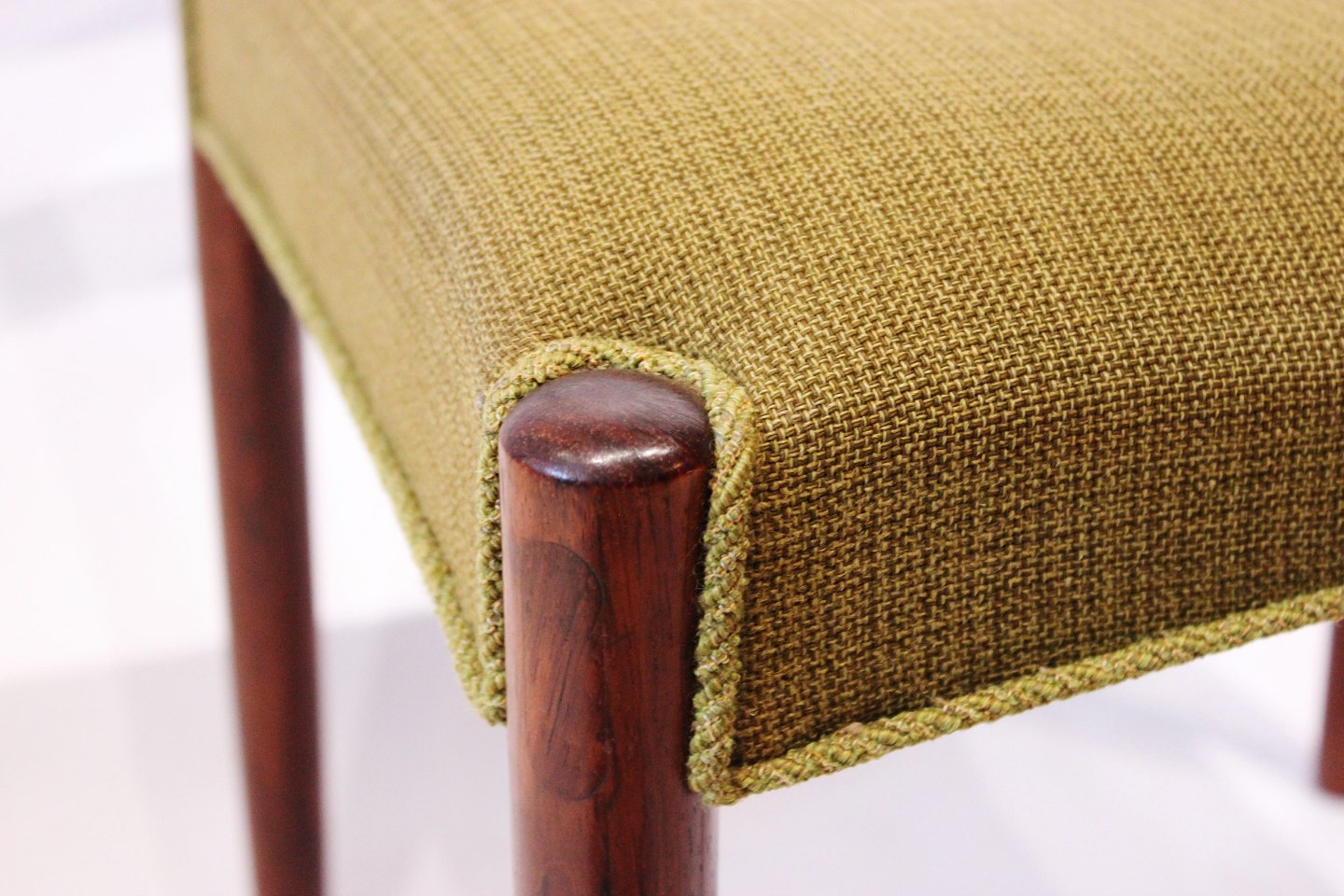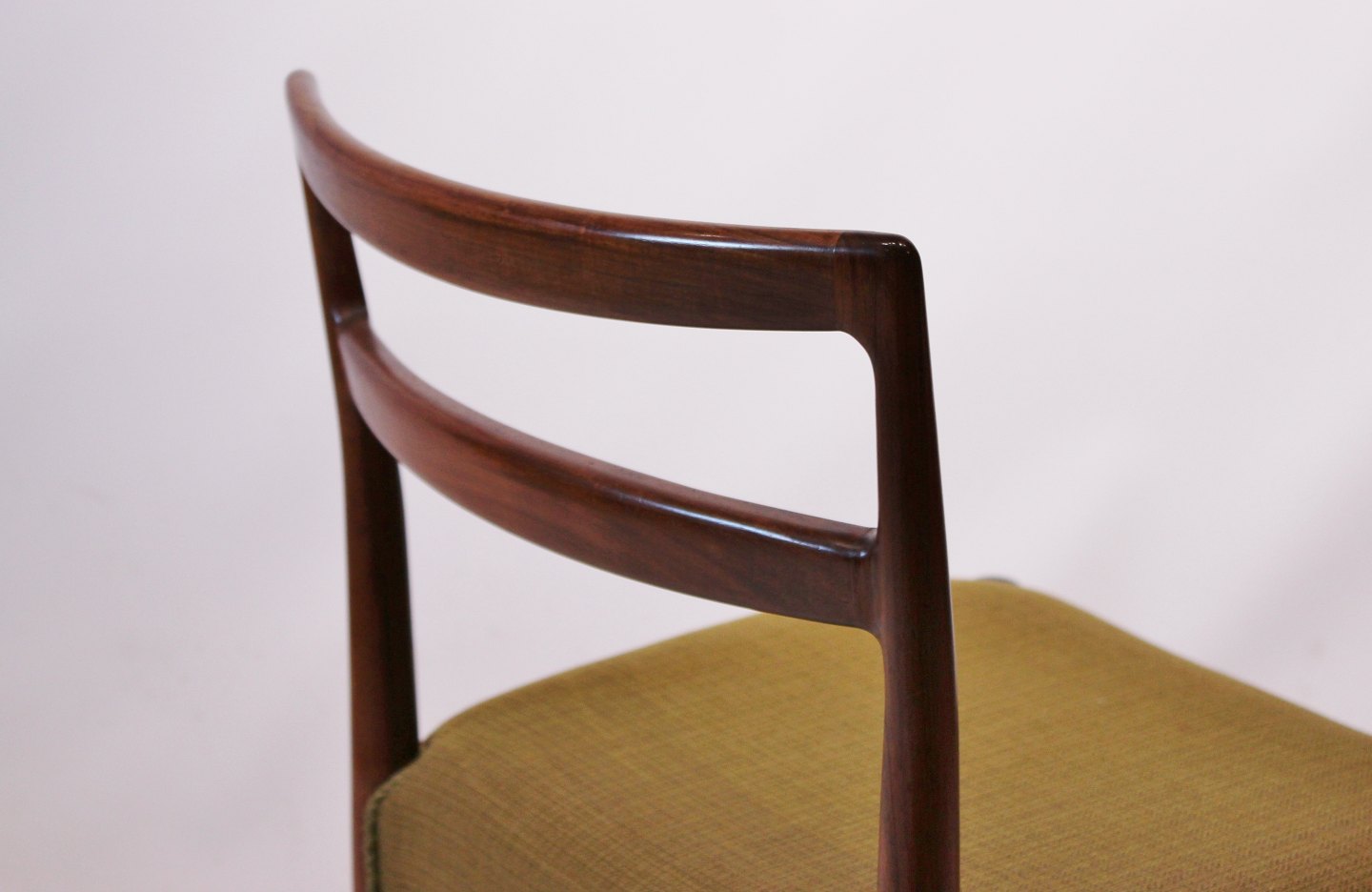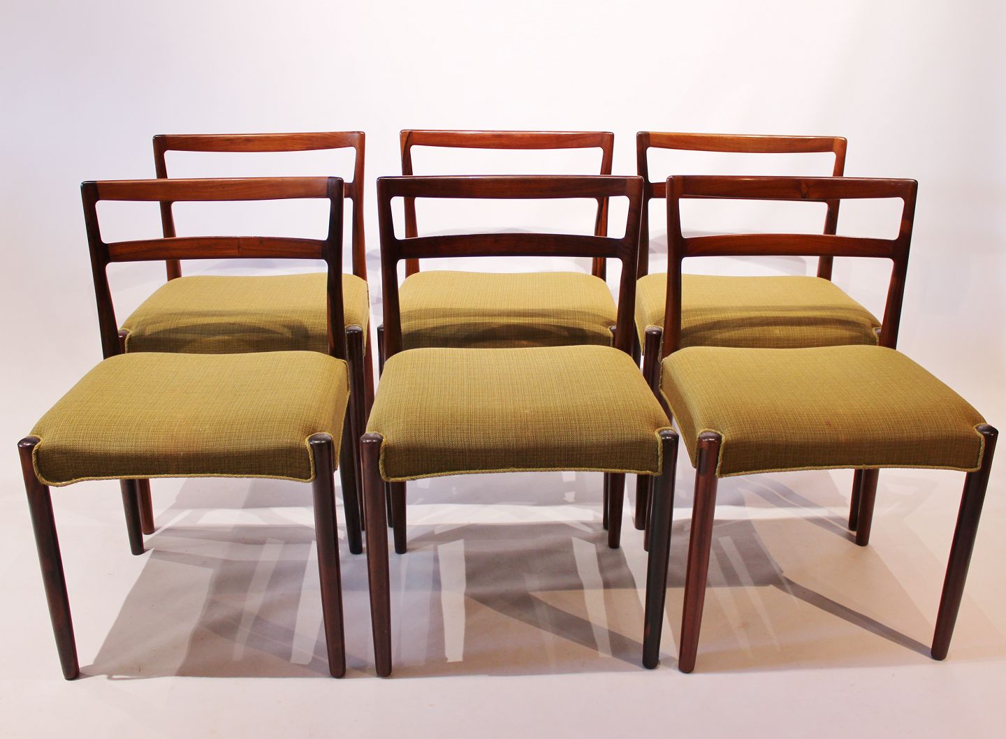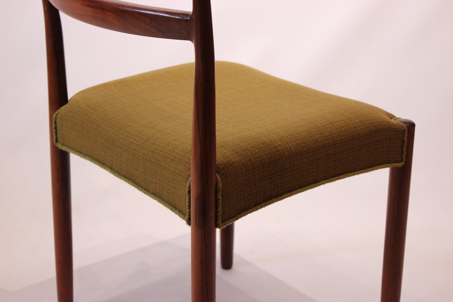 SoldA set of dining room chairs of rosewood and upholstered with green fabric, designed by Knud Færch from the 1960s. The chairs are in great vintage condition and numbered 6264.