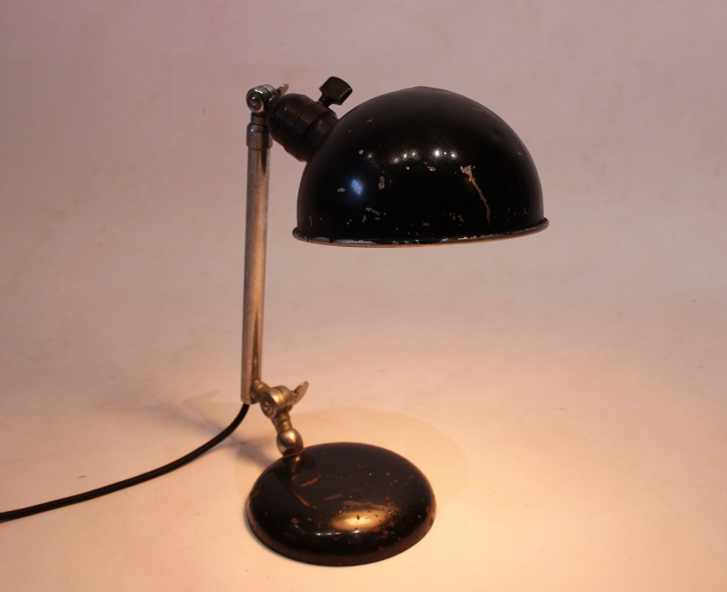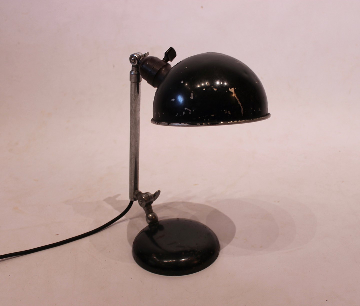 SoldOffice and/or worklamp of black painted metal, adjustable and from the 1940s. The lamp is in good vintage condition.