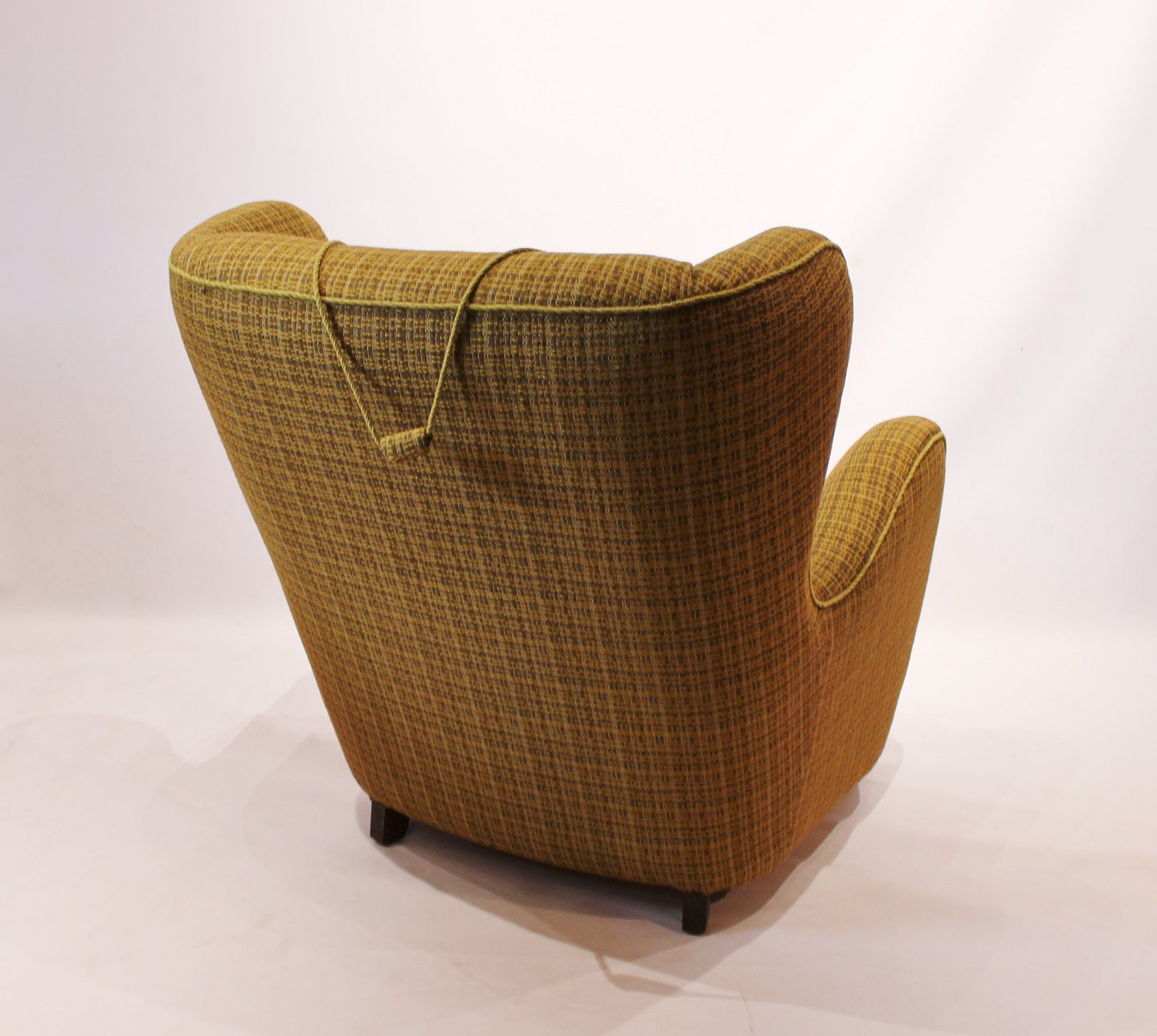 SolgtLænestol overpolstret i mørkegrønt uldstof, stolen er af dansk design fra 1930erne og er i flot brugt stand.