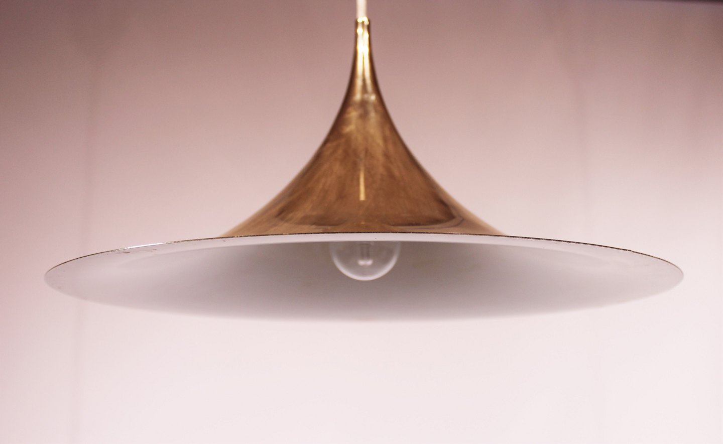 SoldGold colored Gubi Semi pendant designed by Claus Bonderup and Thorsten Thorup in 1968. The lamp is in great vintage condition.