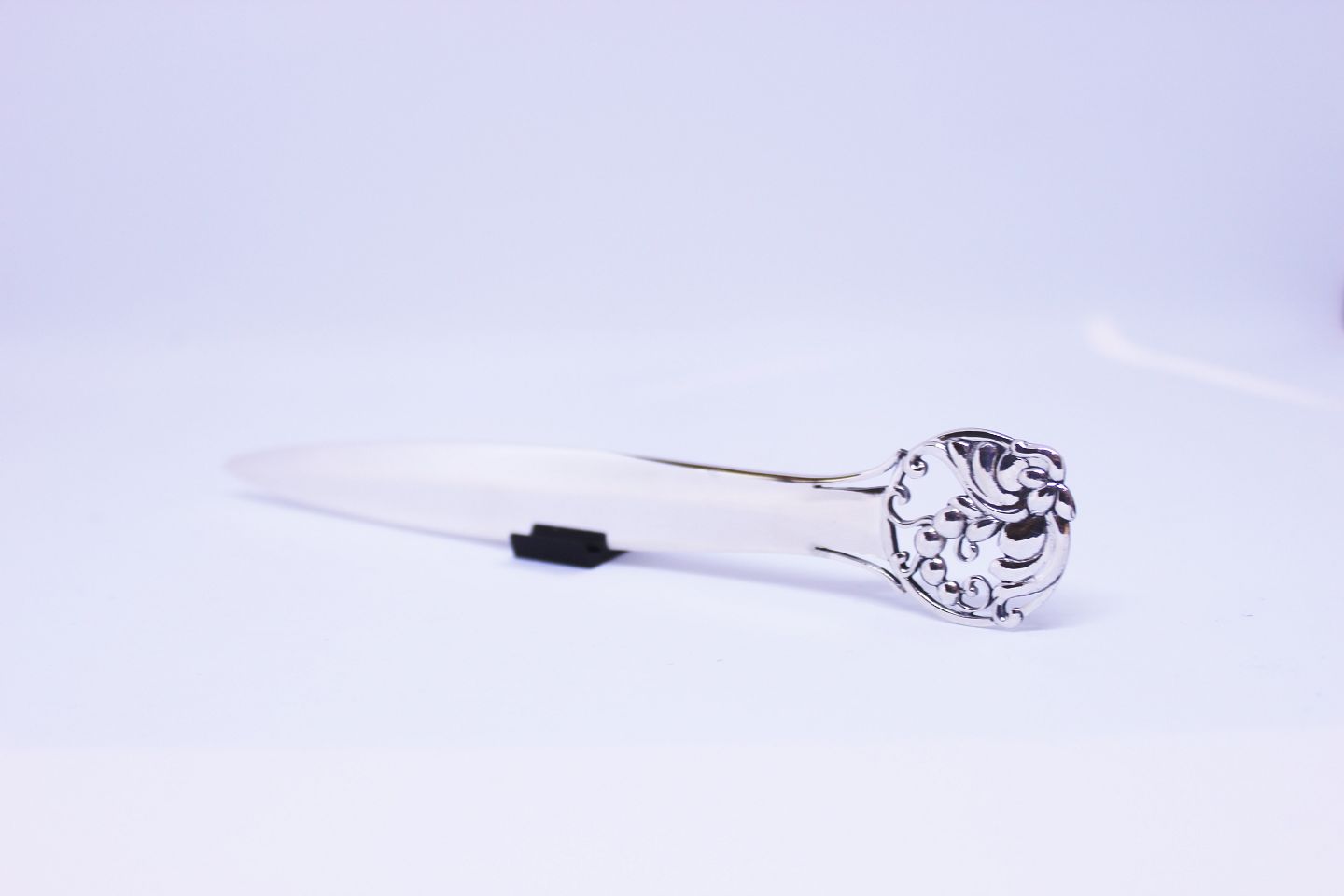 Papirkniv af 925 sterling sølv smukt dekoreret med drueklase.
