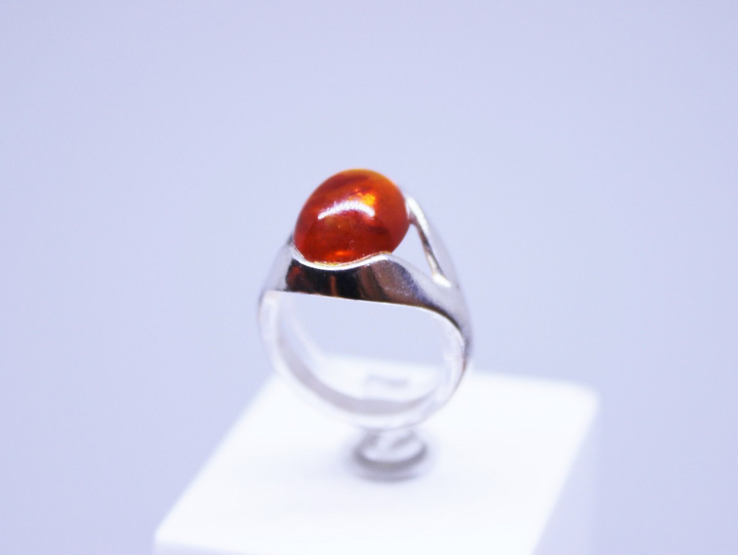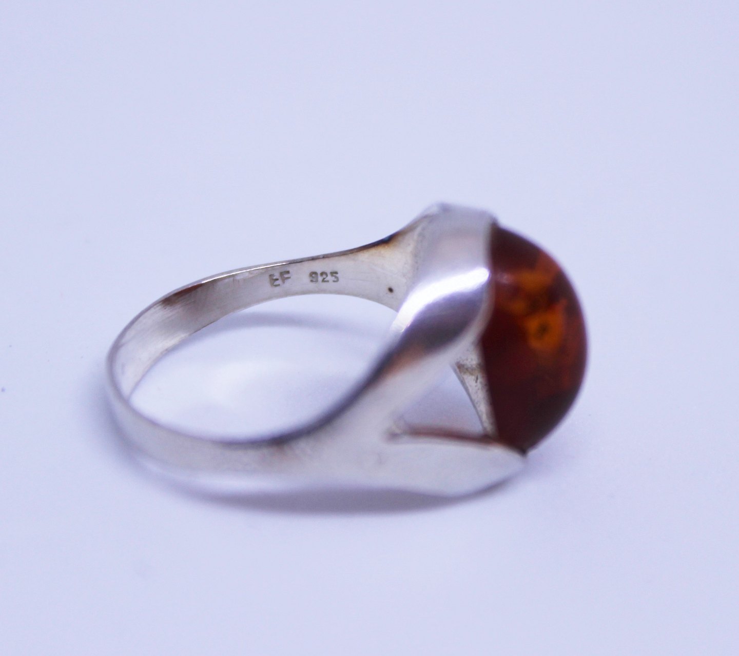SolgtRing af 925 sterling sølv og rav, stemplet EF.