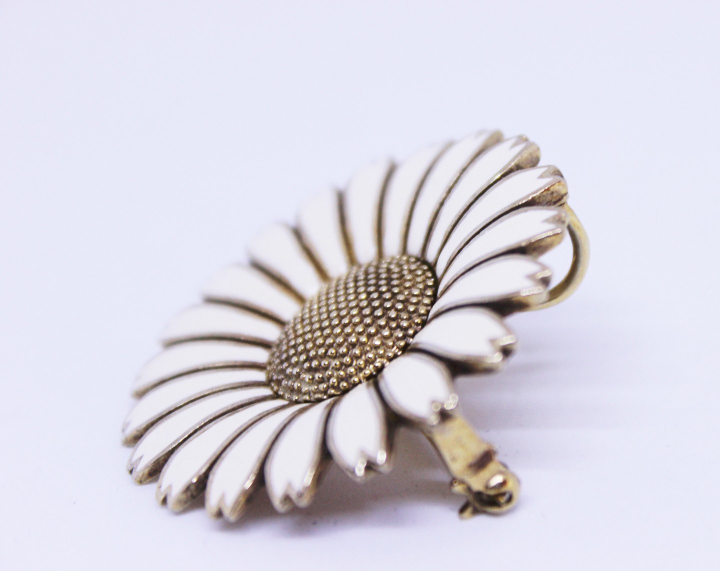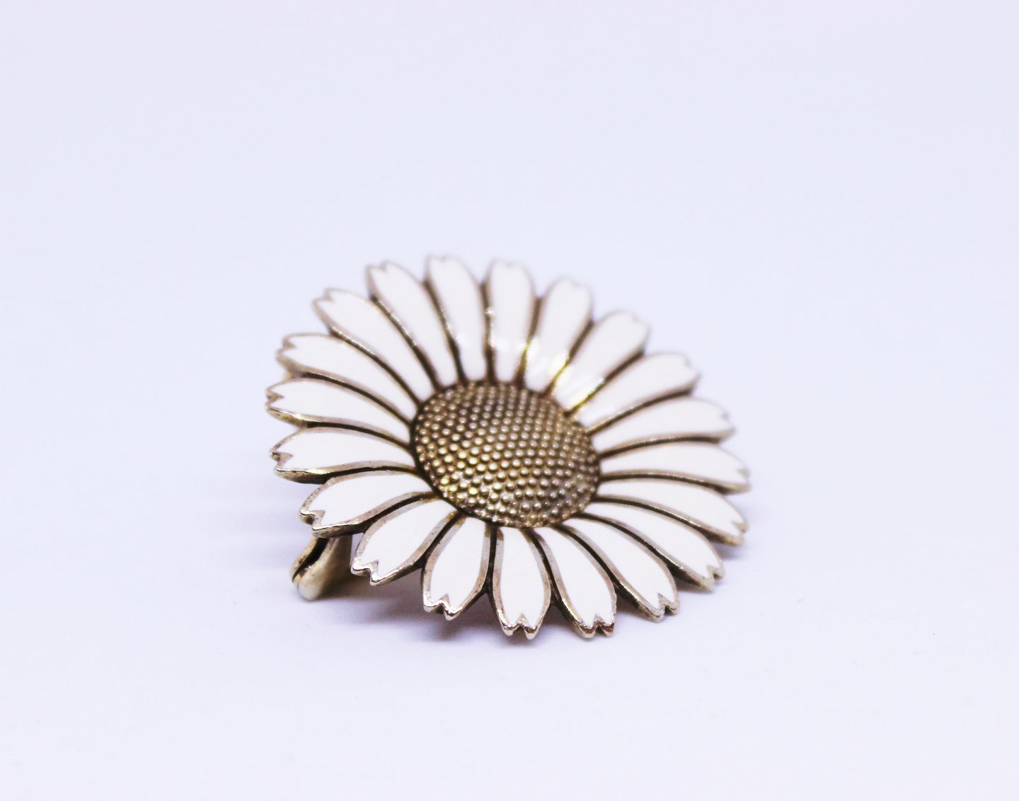 SoldDaisy brooch and pendant of 925 sterling silver and white enamel.