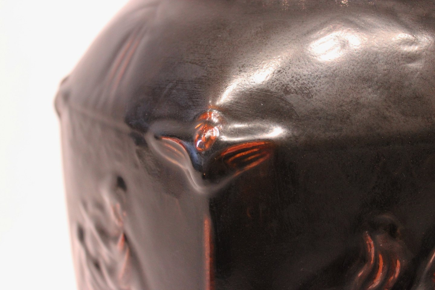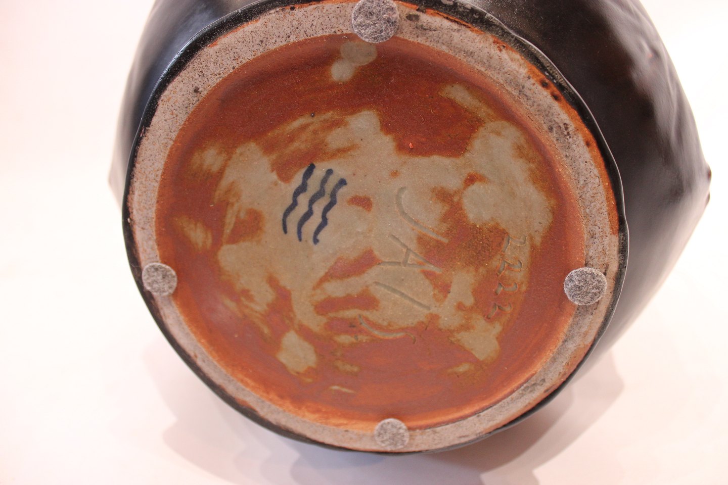 Royal Copenhagen stoneware floor vase with a dark glaze decorated with motifs signed by Jais Nielsen and numbered 2222. The vase is in great vintage condition.