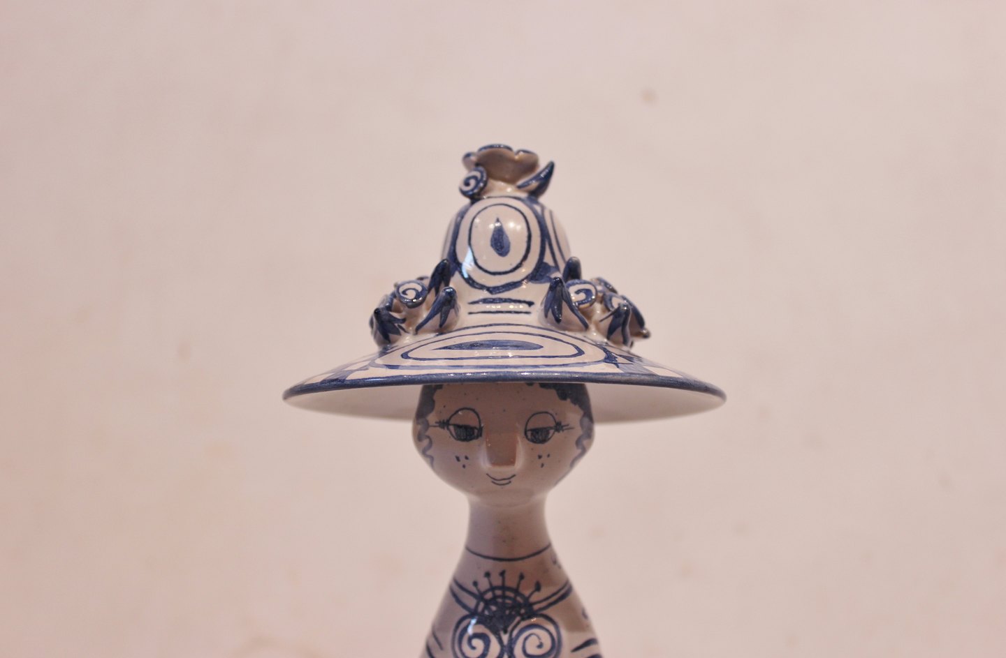 SoldCeramic figurine "Summer", M21, from the series "The four seasons" designed by Bjoern Wiinblad. This figurine was made in 1976 and is decorated in blue and White colors.