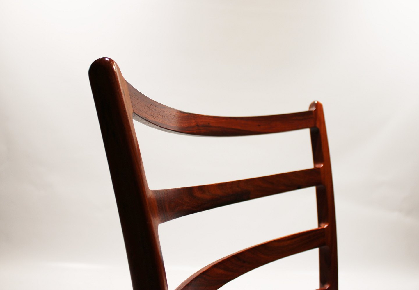 SoldSet of 6 dining chairs of rosewood and upholstered with light wool fabric designed by N.O. Møller. The chairs are from the 1960s abd in great vintage condition.