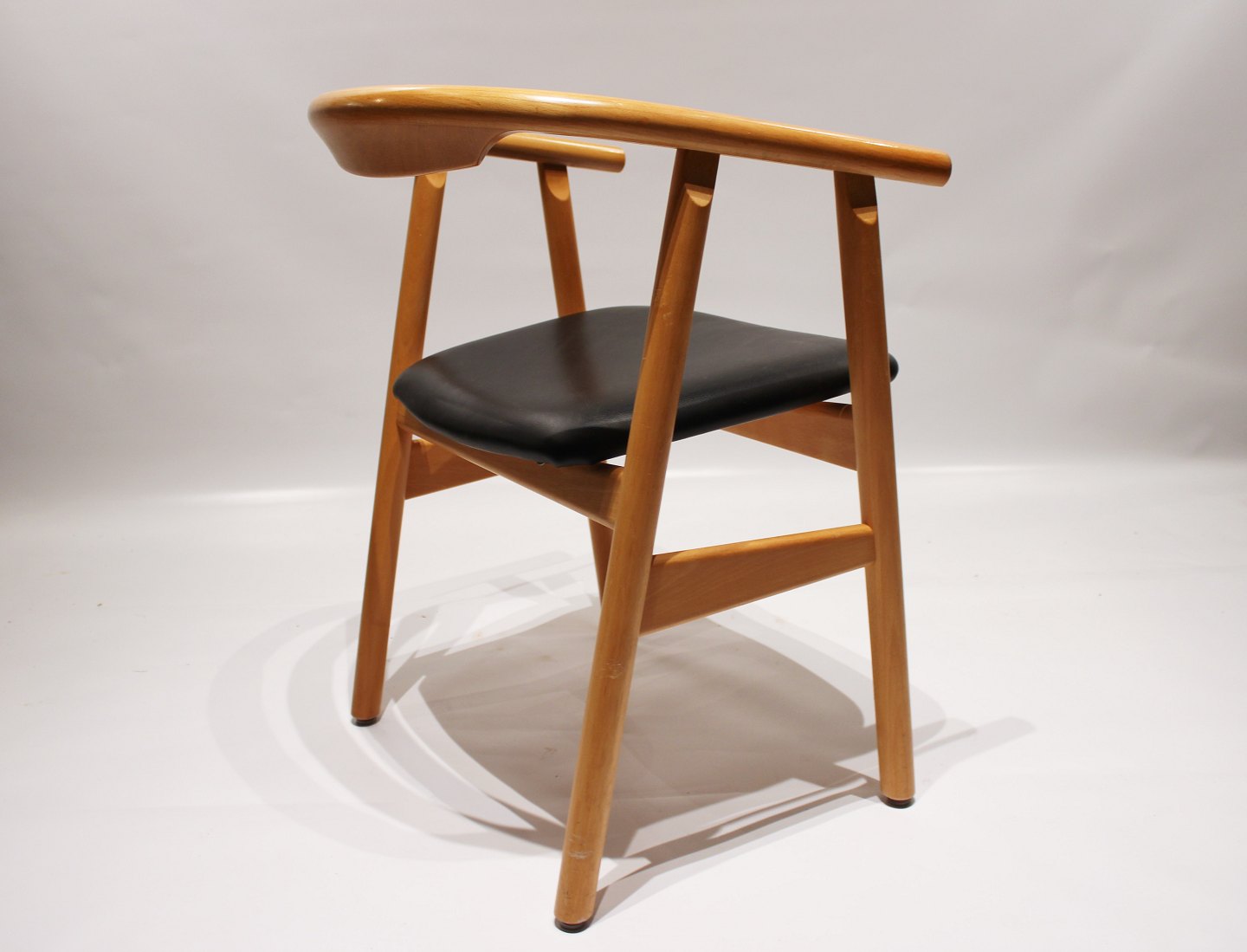 Set of 4 dining room chairs, model GE525, designed by Hans J. Wegner and manufactured by Getama in the 1960s. The chairs are of ash and upholstered with black leather.