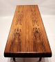 SoldCoffee table in rosewood with curved edges of danish design from the 1960s. The table is with an open shelf, drawers and in great vintage condition.