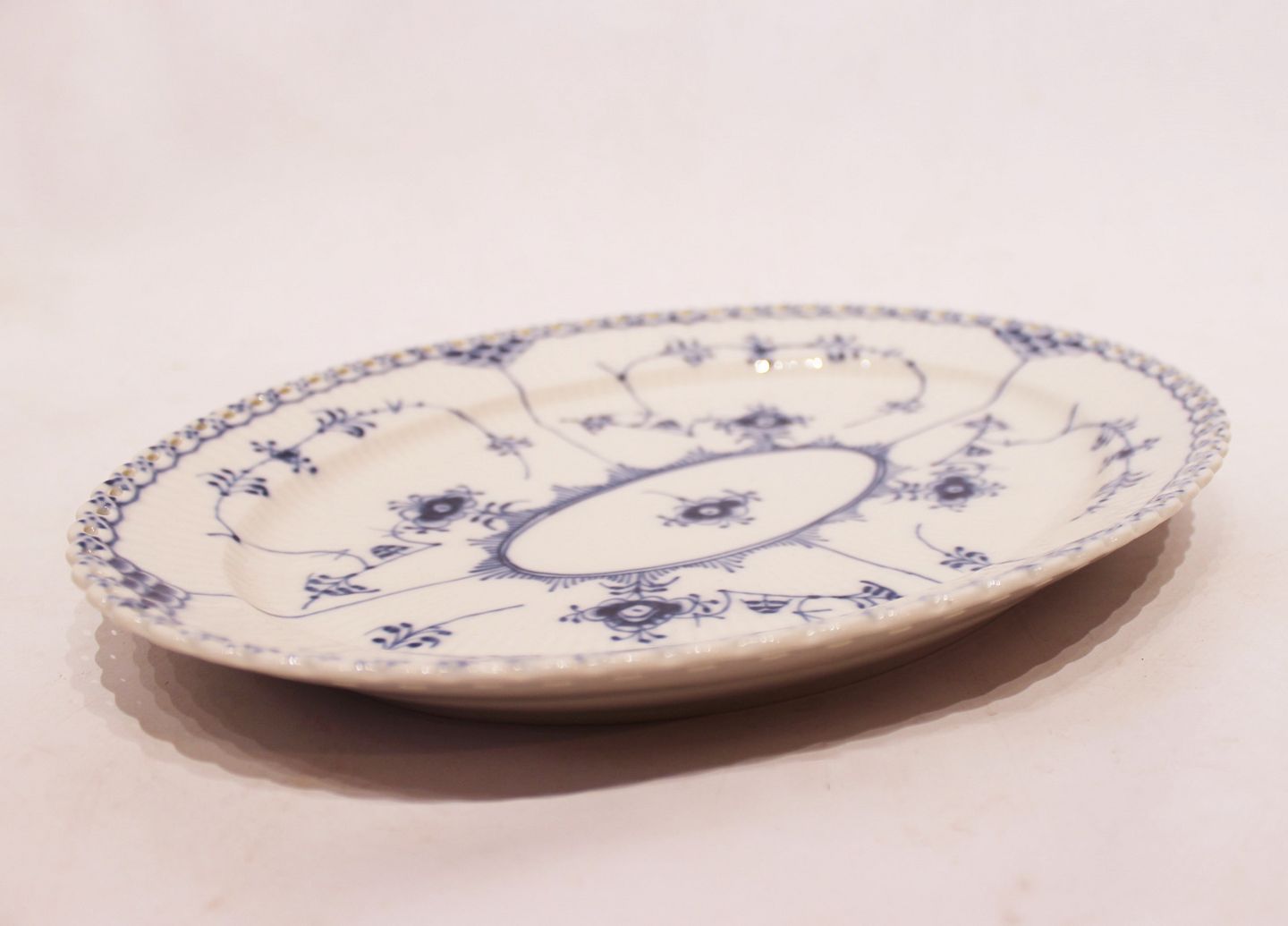 SolgtKgl. musselmalet helblonde ovalt fad, #1/1149.