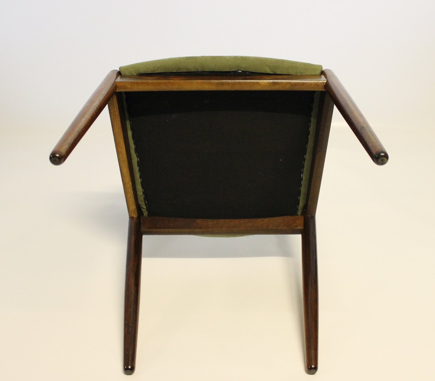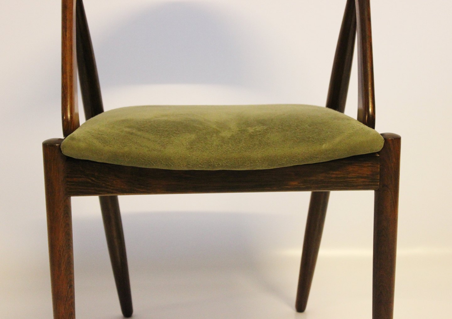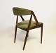 A set of six dining chairs, model 31, designed by Kai Kristiansen and manufactured by Schou Andersen in the 1960s. The chairs are of rosewood and upholstered with green fabric.